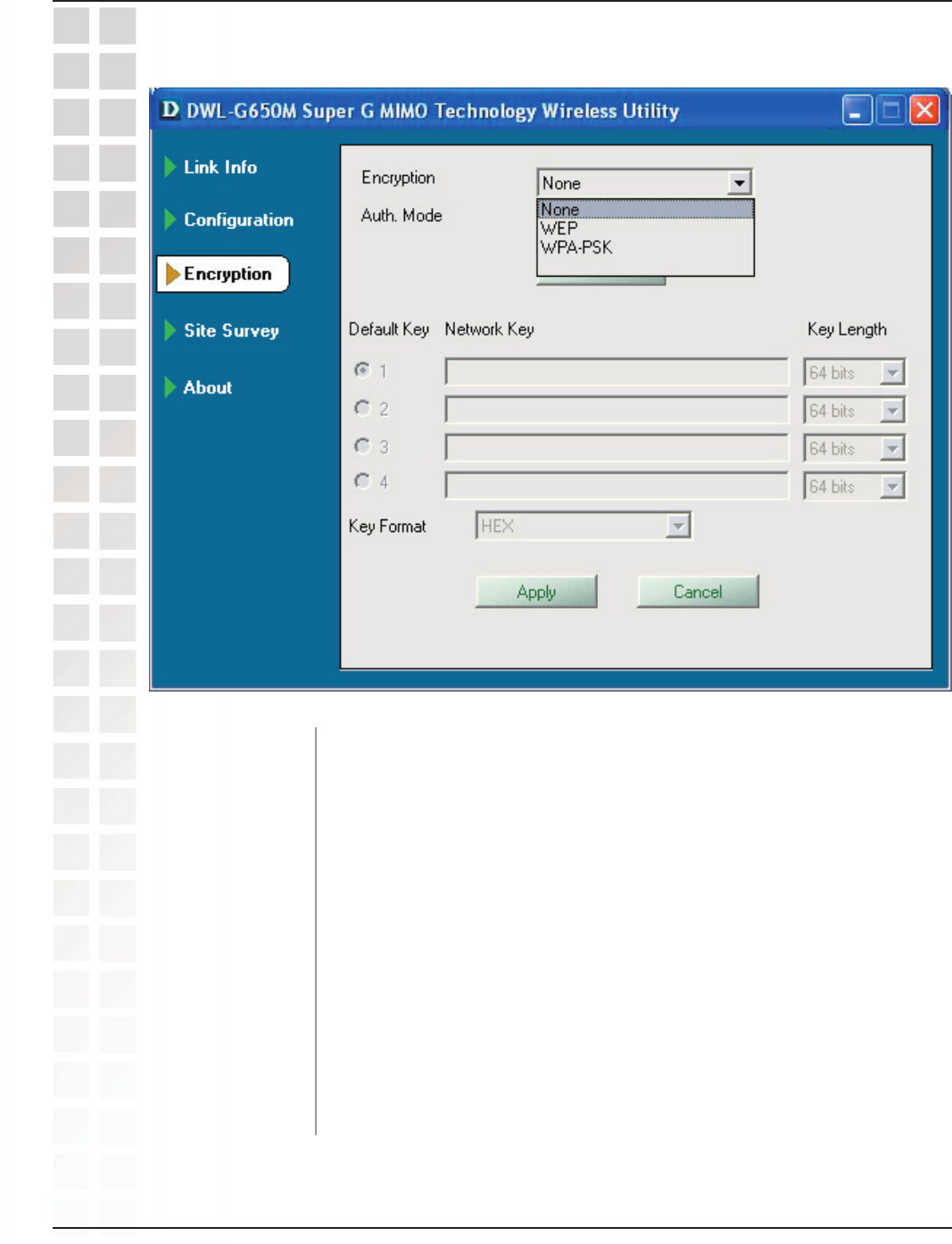 The DWL-G650M provides an increased level of security with WPA-PSK. WPA-Personal