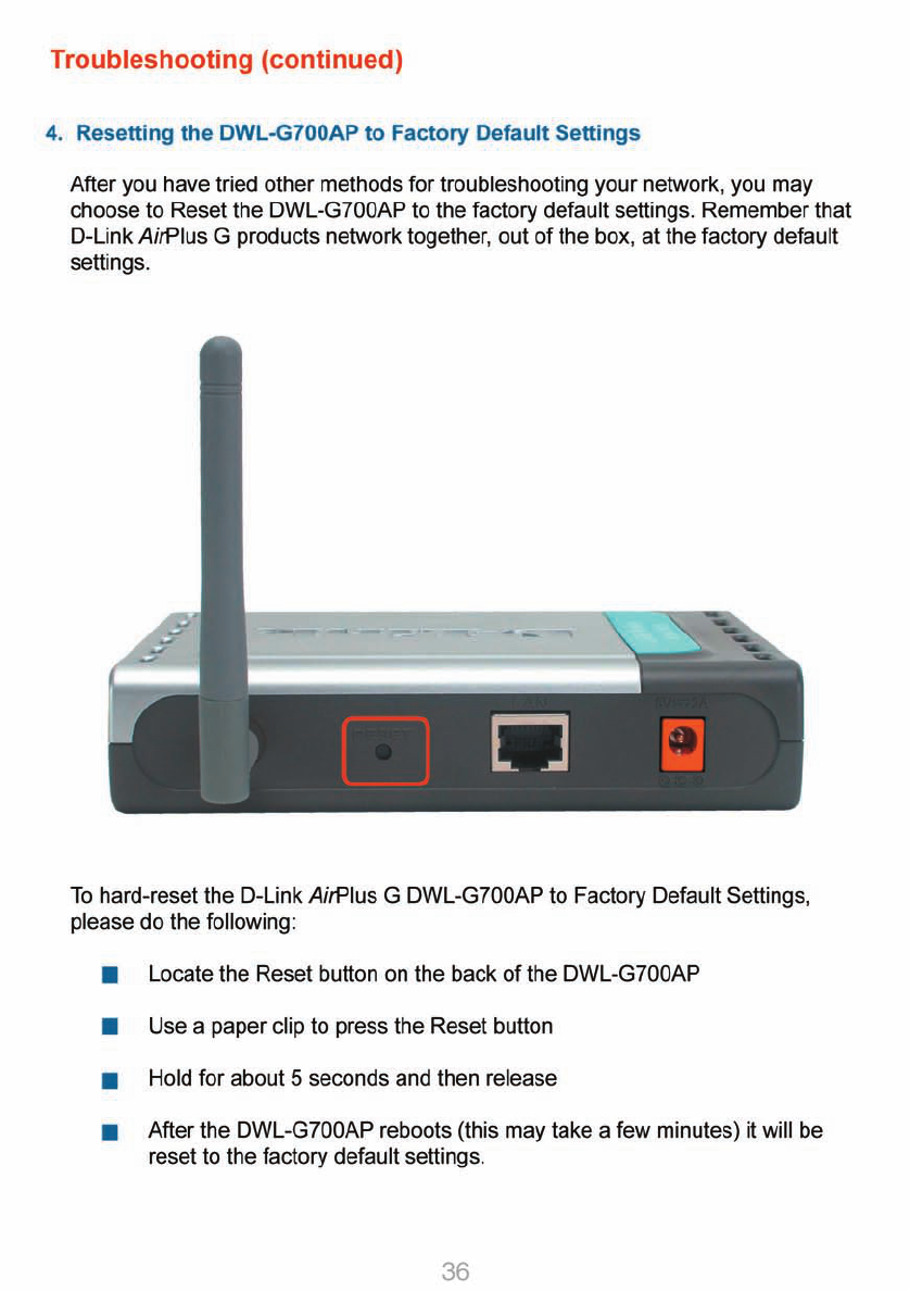 D Link DWLG700APB2 AirPlus G 2.4GHz Wireless Access Point User Manual dwl700ap manual 061203