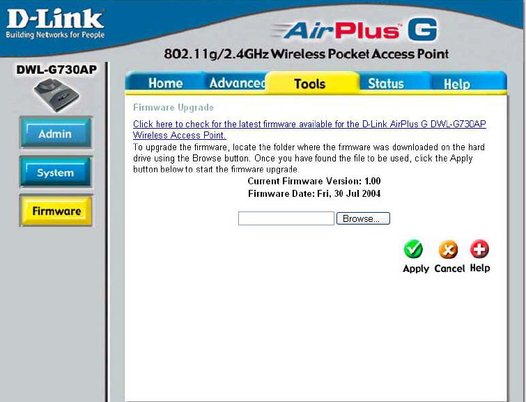 After you have downloaded the firmware upgrade to your hard drive, click Browse to