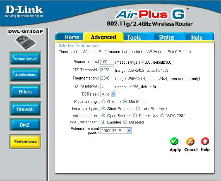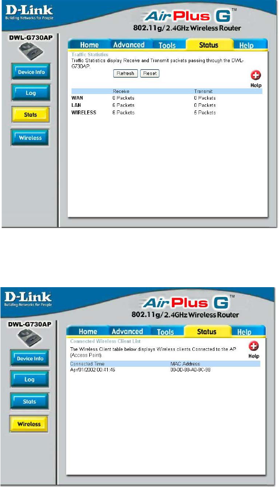 that pass through the DWL-G730AP on both the Ethernet and the wireless networks.