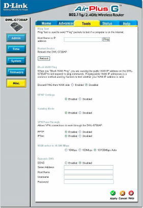 To use the DWL-G730AP as a router, toggle the switch on the back of the unit.