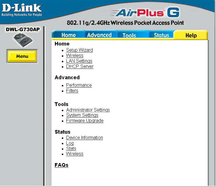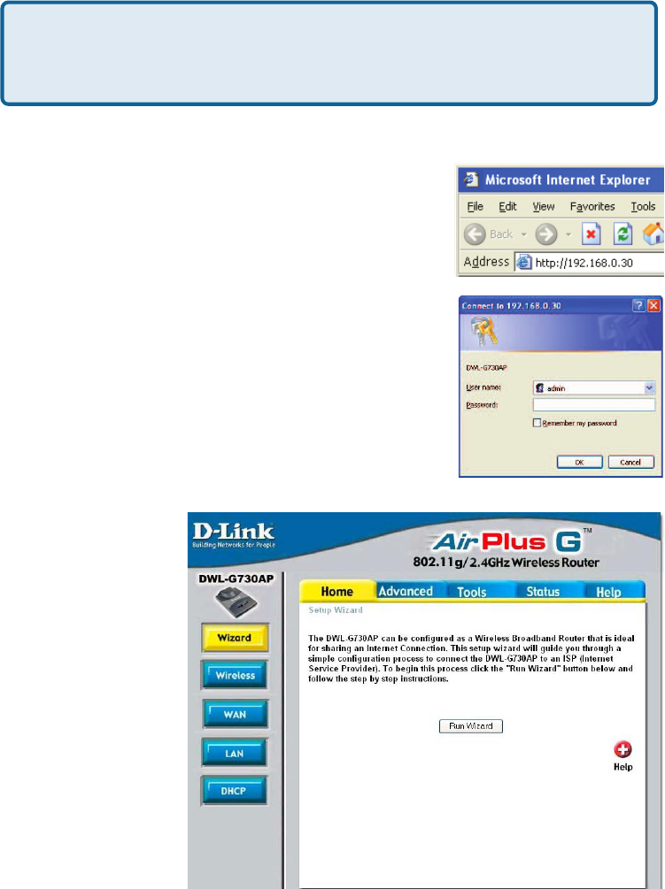 when the DWL-G730AP is operating in Router mode. To run the setup wizard, establish
