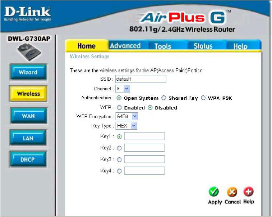 a wireless connection with the DWL-G730AP and follow the steps below.