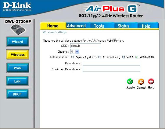 Select WPA-PSK to select Wi-Fi Protected Access without a