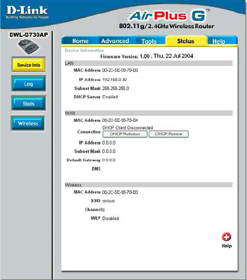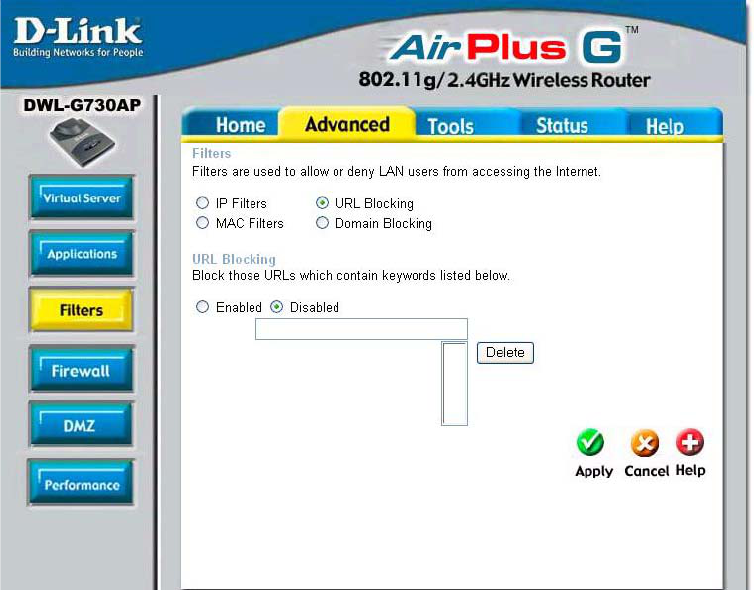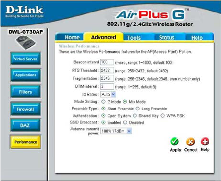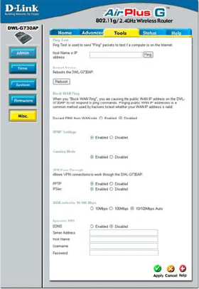 The DWL-G730AP is also capable of port-redirection meaning incoming traffic to a