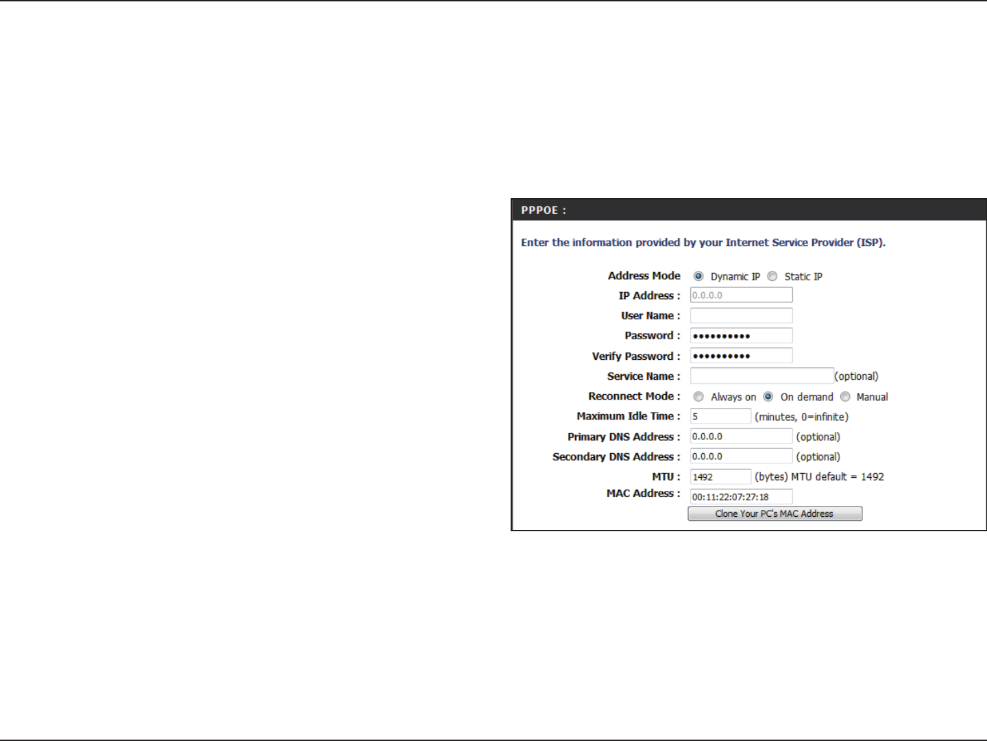 Note: Using a power supply with a dierent voltage rating than the one included with the DHP-1320 will cause damage and void the