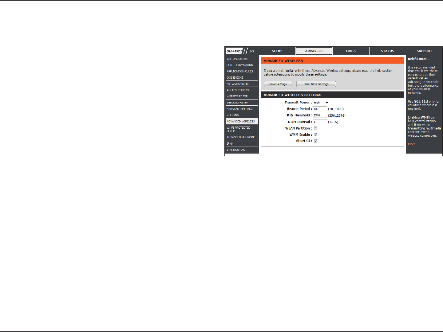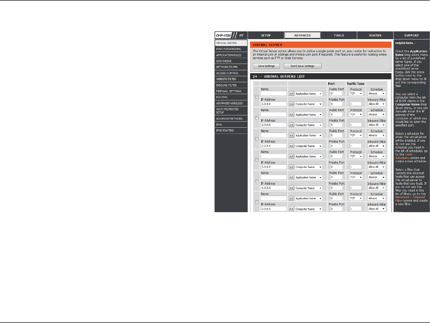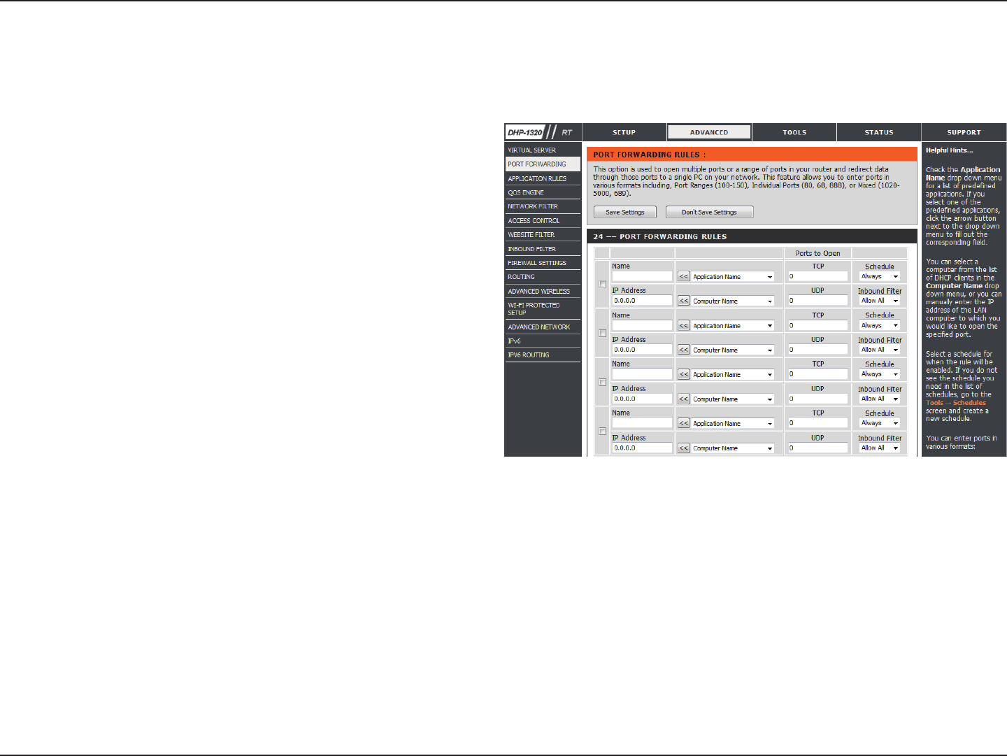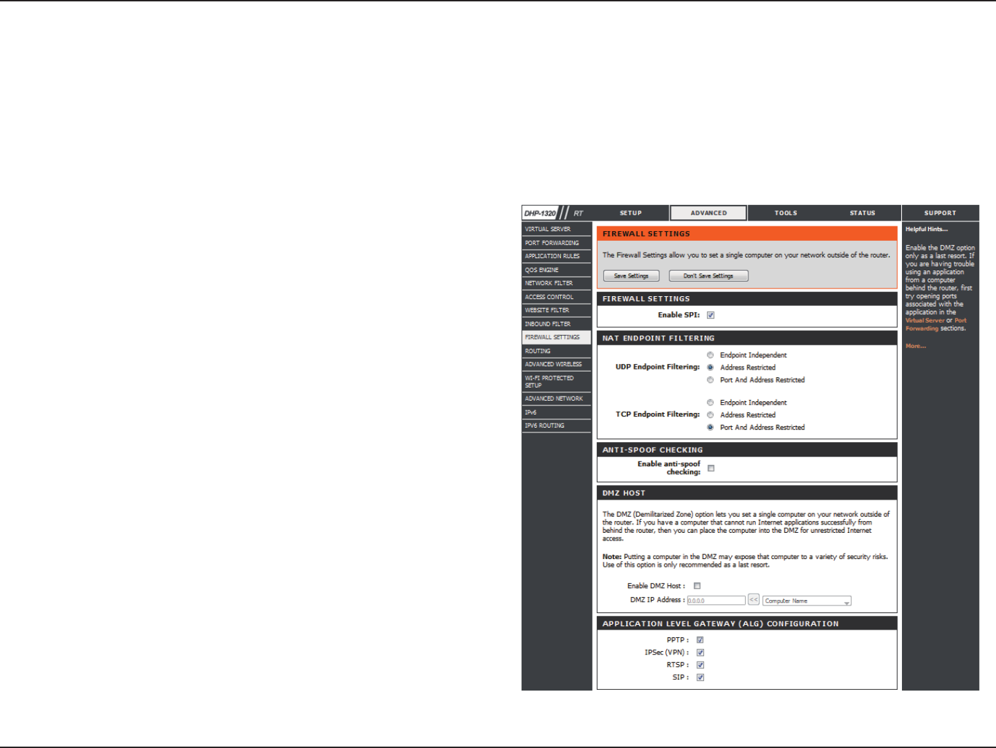 concurrent IPSec and PPTP sessions, so users behind the DHP-1320 can securely access corporate networks.