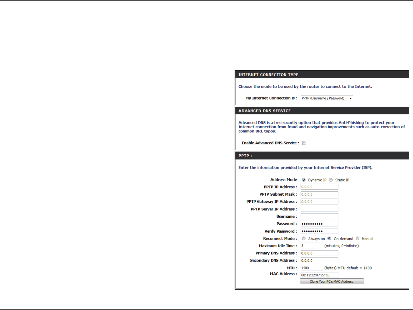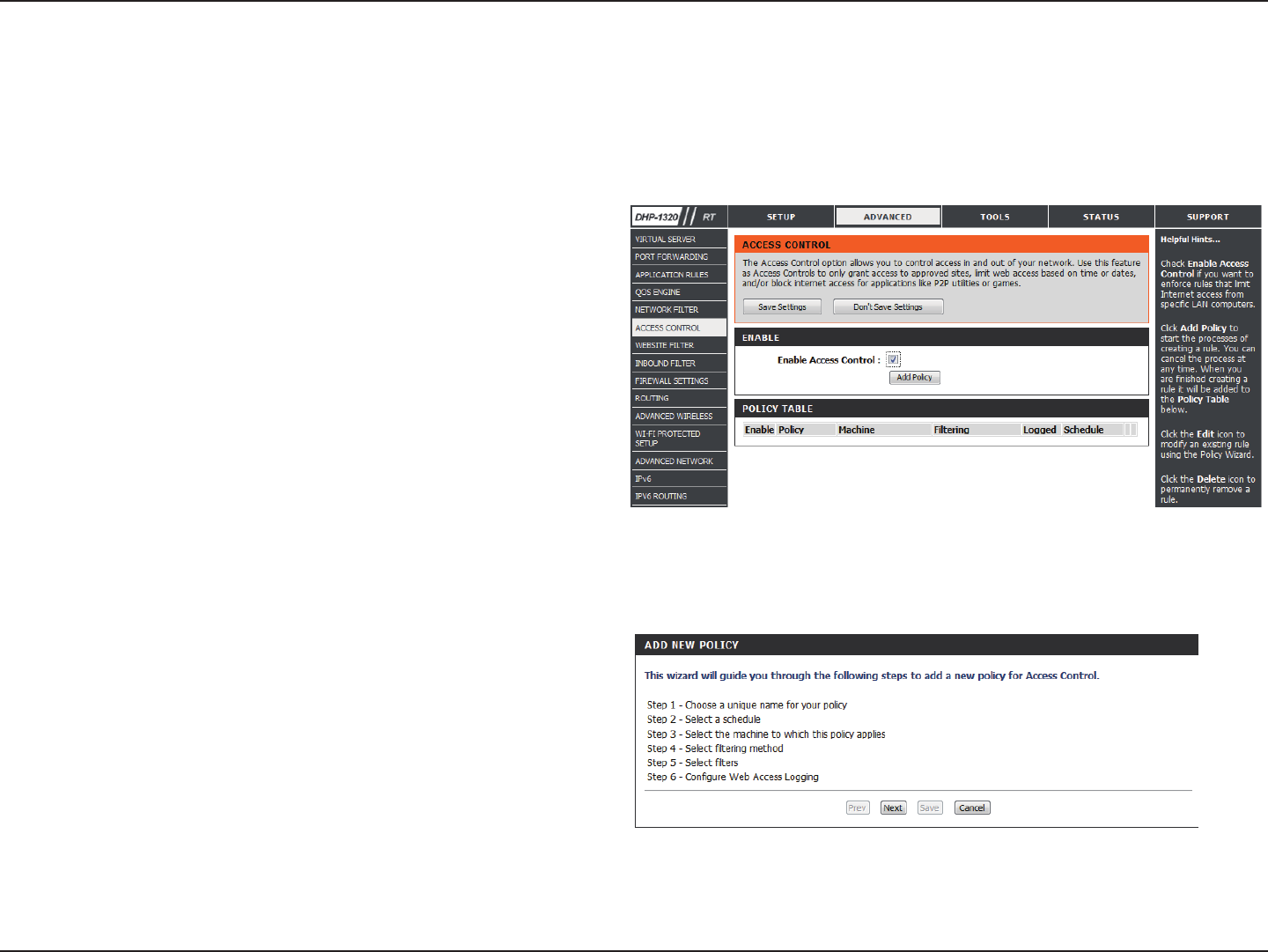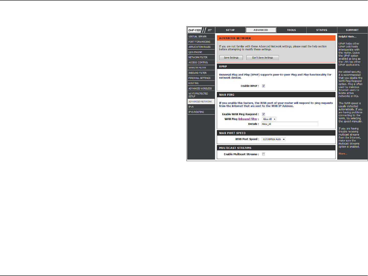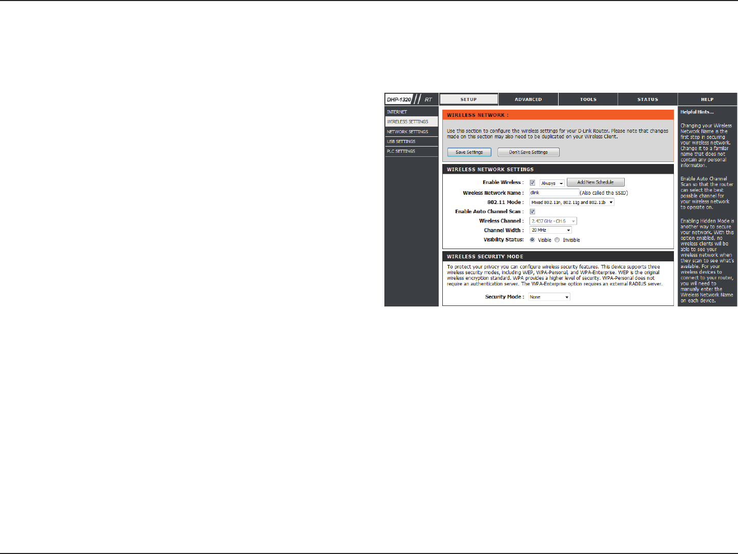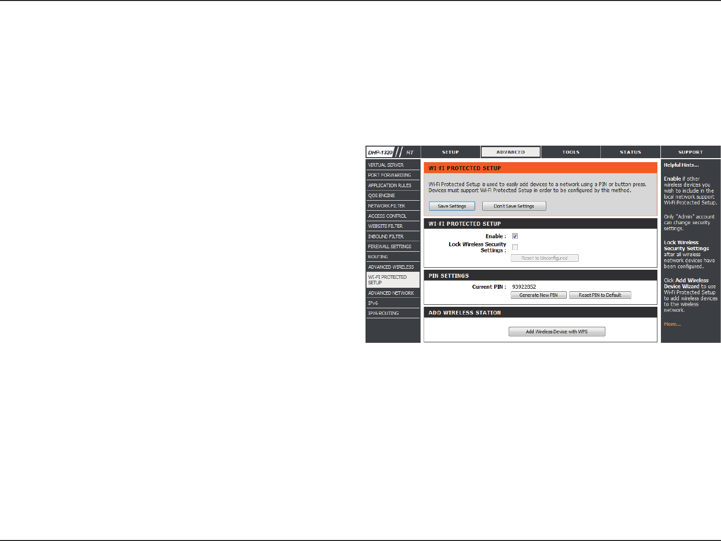 concurrent IPSec and PPTP sessions, so users behind the DHP-1320 can securely access corporate networks.