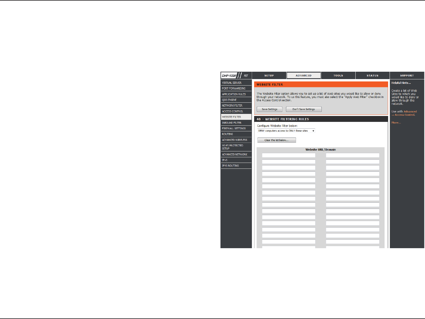 Content Filtering - Easily applied content ltering based on MAC Address, URL, and/or Domain Name.