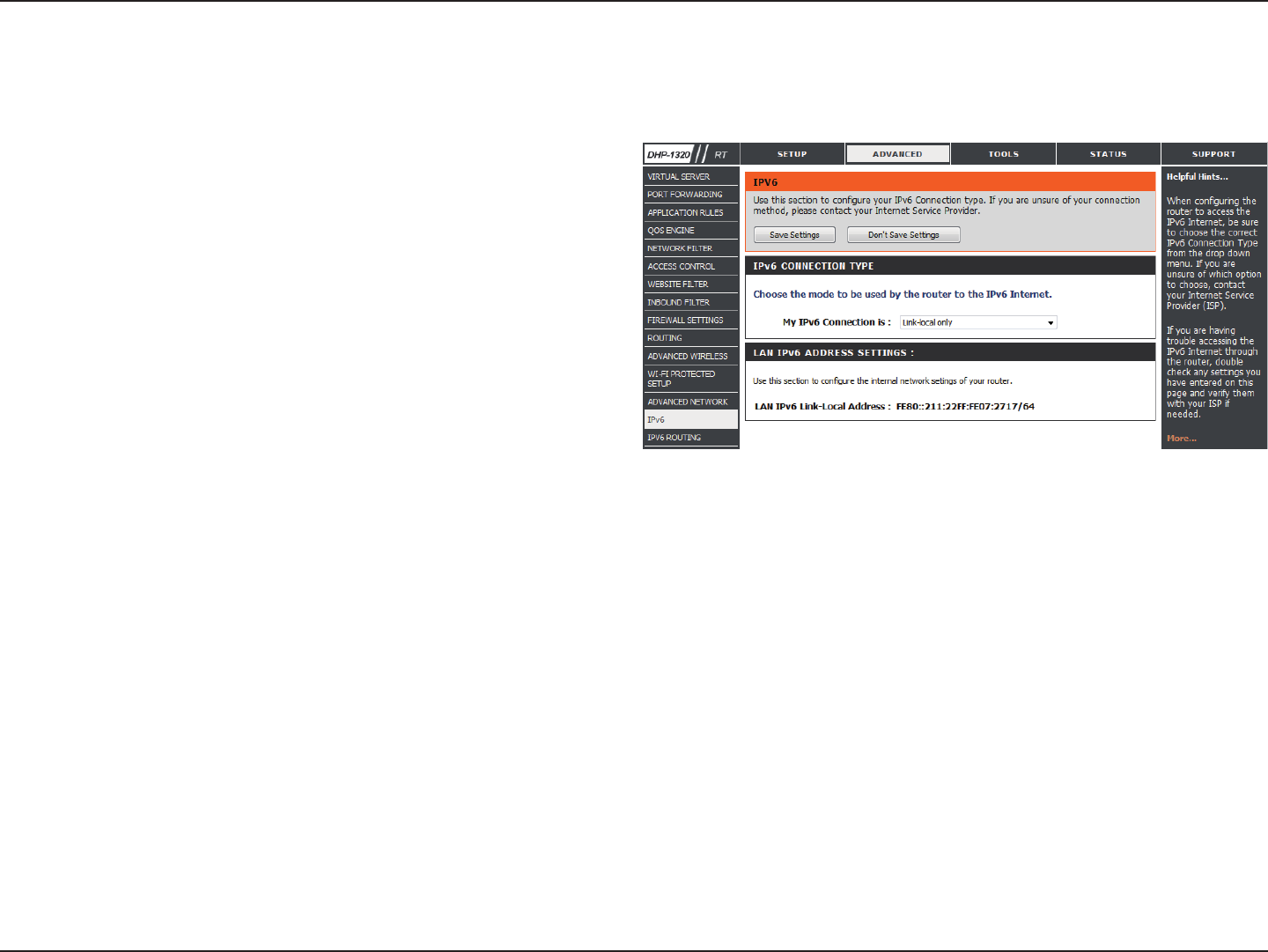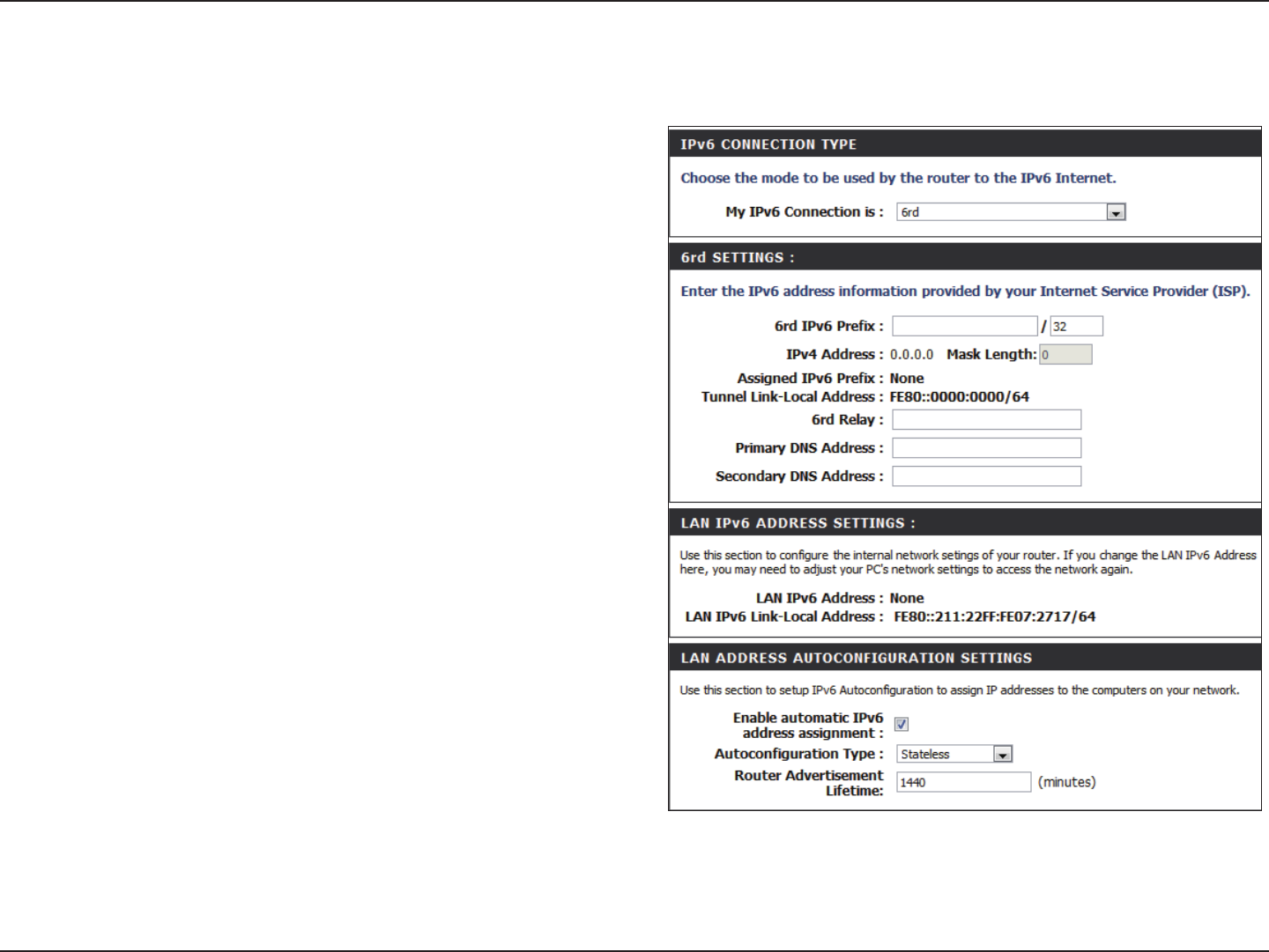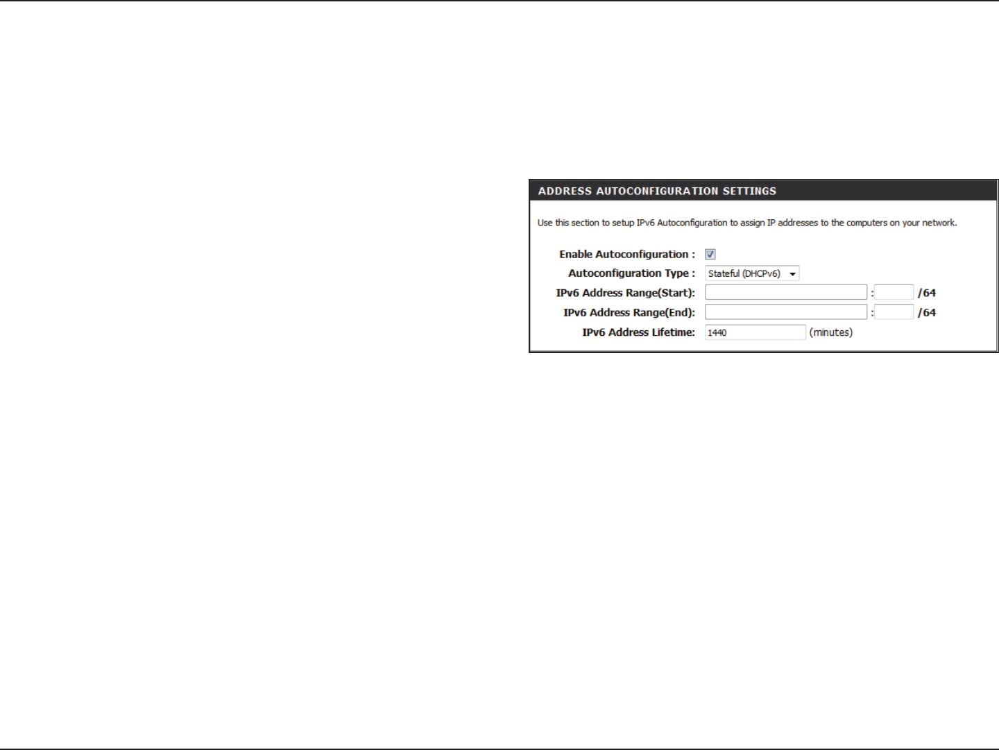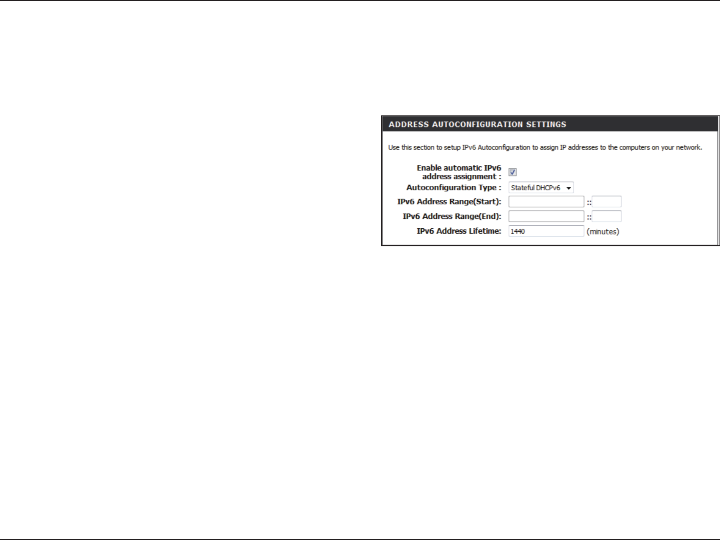 To congure the Router to use a Static IPv6 Stateful connection, congure the parameters in the LAN Address Autoconguration
