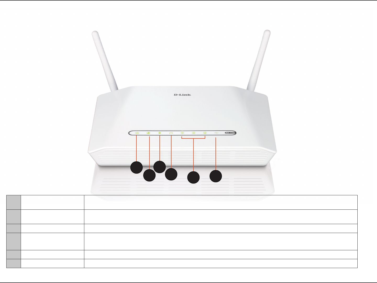 1Power LED A solid green light indicates a proper connection to the power supply. This LED will light orange during a factory reset or