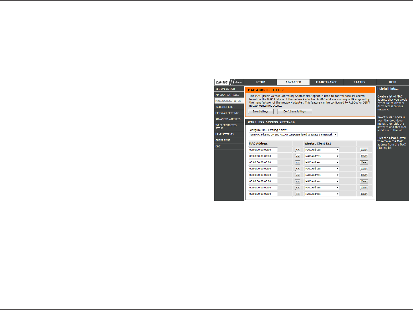 MAC Address Filter .............................................................44