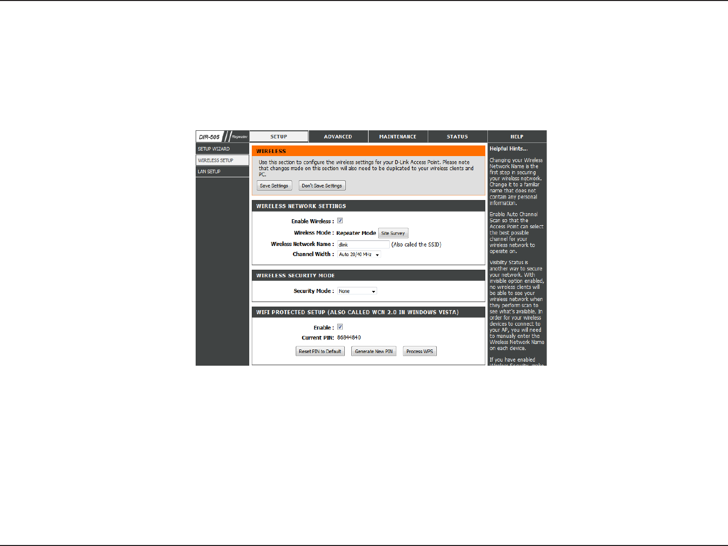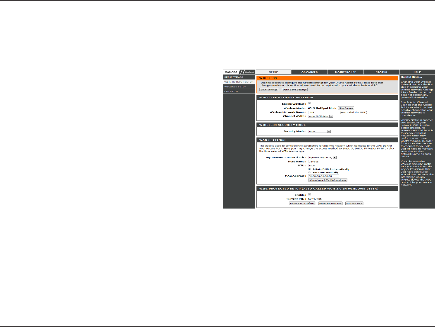 Wireless Settings .................................................................70