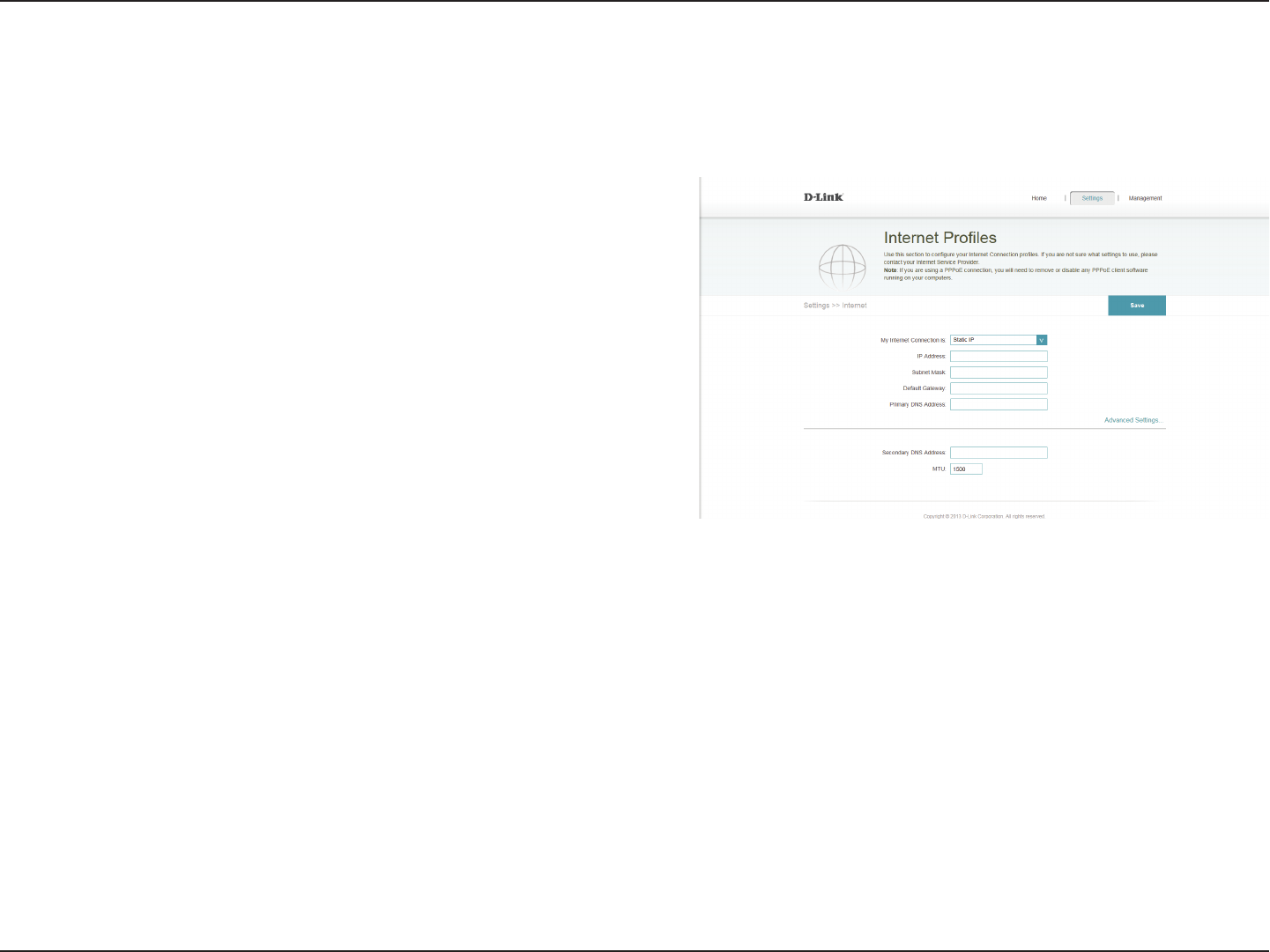 Depending on your Internet Service Provider, you may need to congure the static IP settings in order to connect to the Internet.