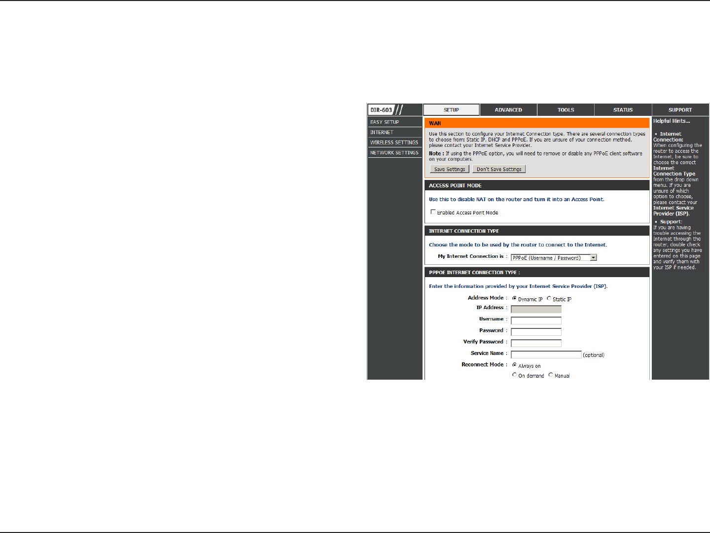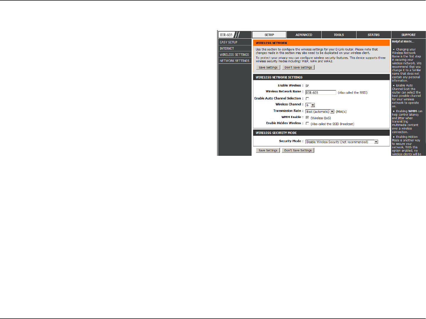 Note: Using a power supply with a different voltage rating than the one included with the DIR-603 will cause damage and void the warranty for this