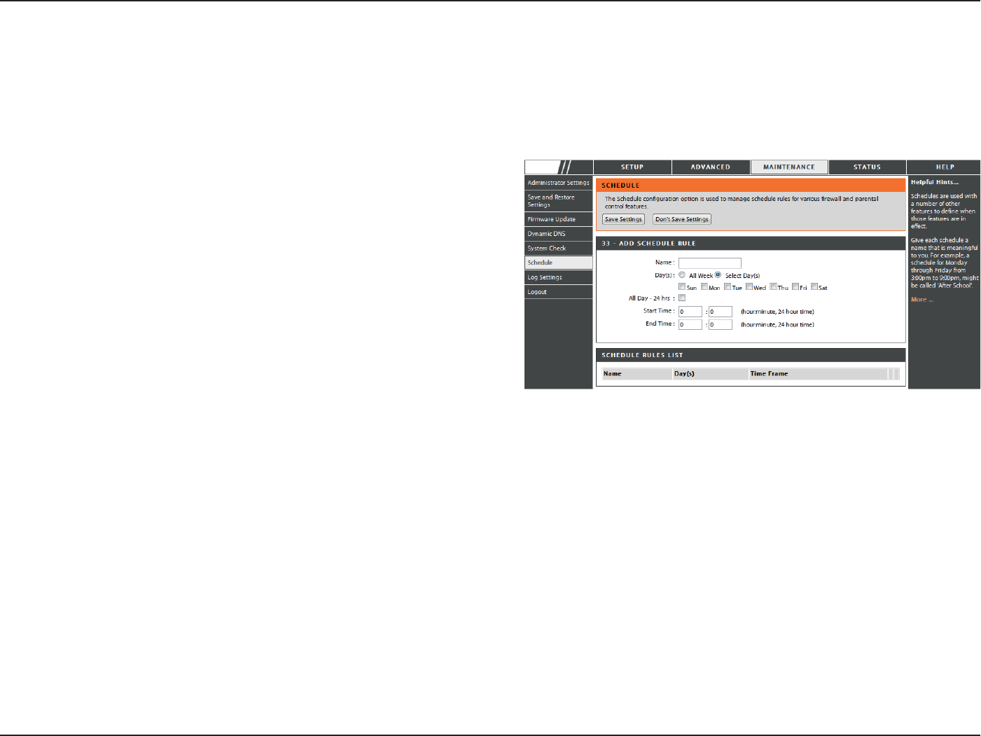 The Router allows the user the ability to manage schedule rules for various rewall and parental control features on this window.