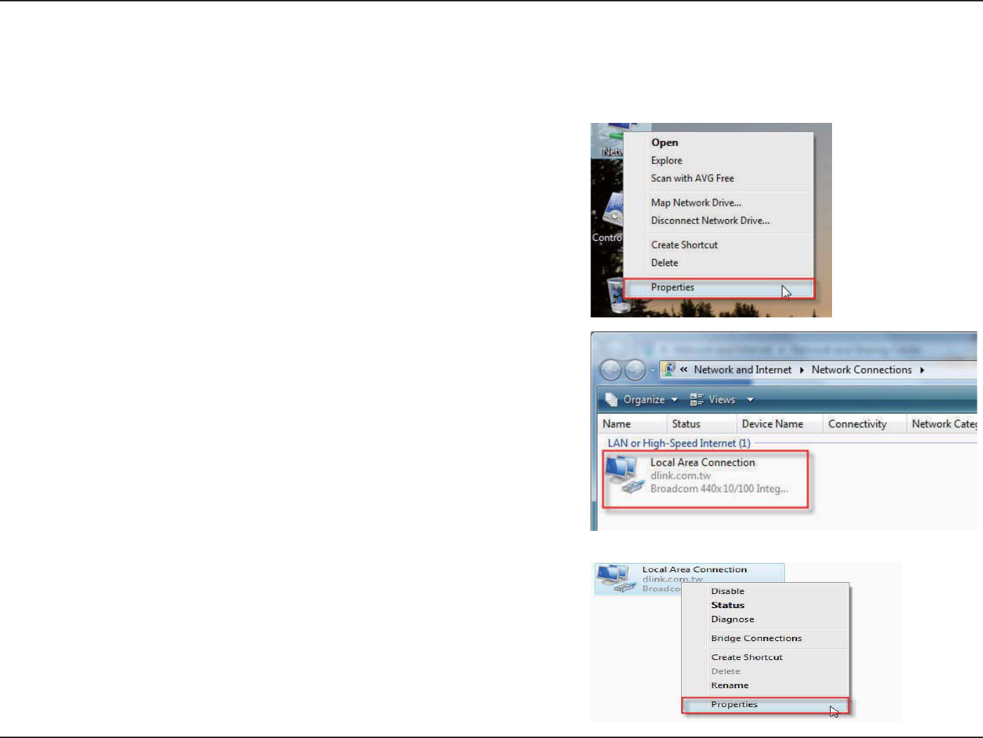The following are step-by-step directions to congure the IP address in Windows Vista.