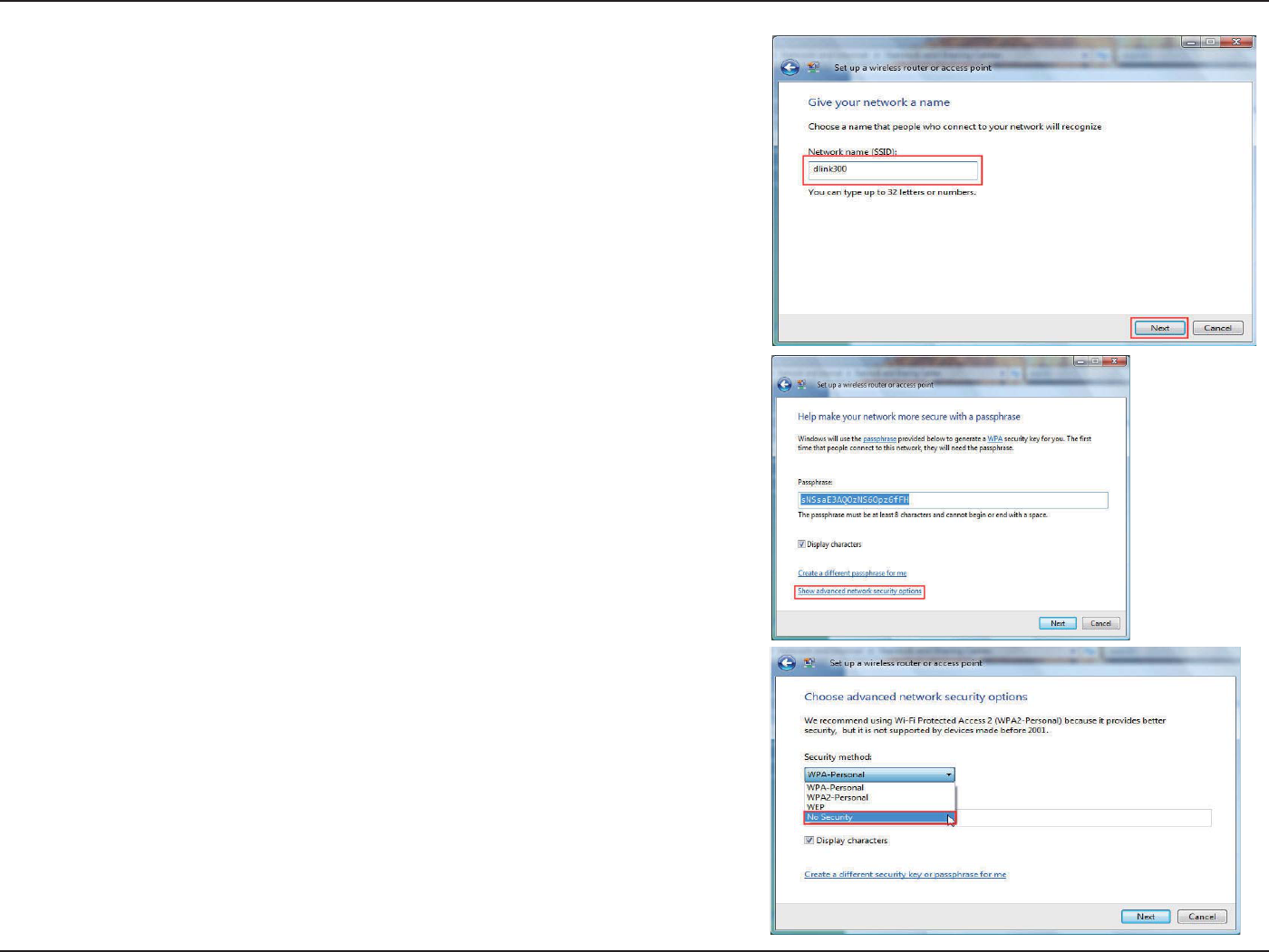 The DIR-605L supports Wi-Fi protection, referred to as WCN 2.0 in Windows Vista. The instructions for setting this up depend