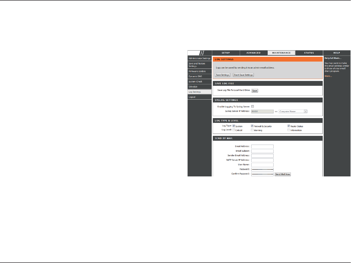 The system log displays chronological event log data specied by the router user. You may also save a simple text le containing