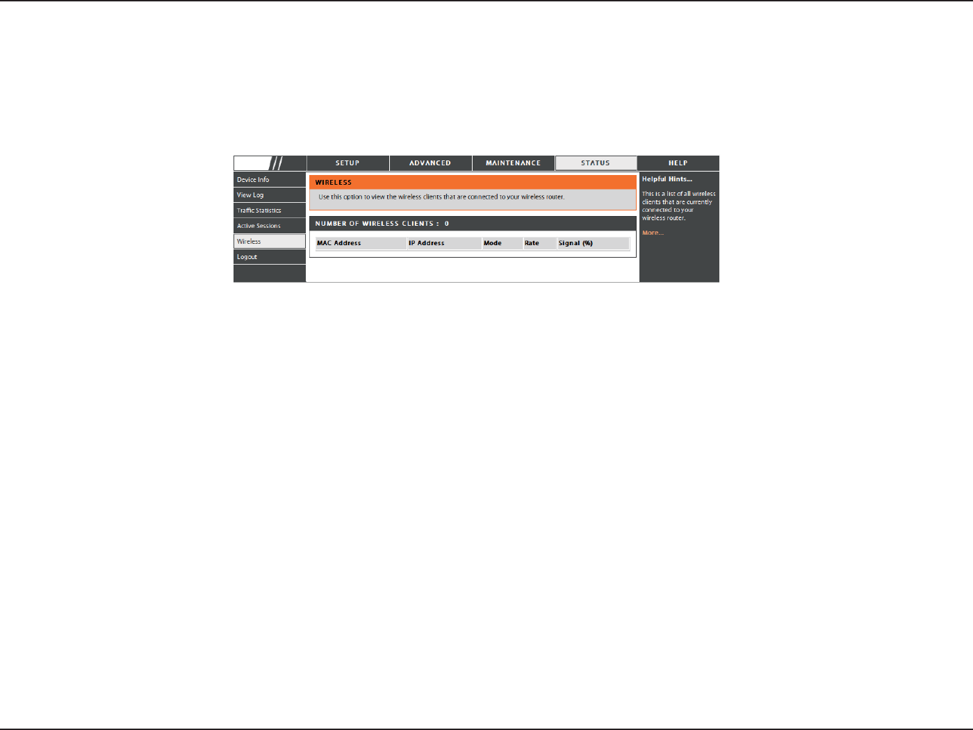 The wireless client table displays a list of current connected wireless clients. This table also displays the connection time and