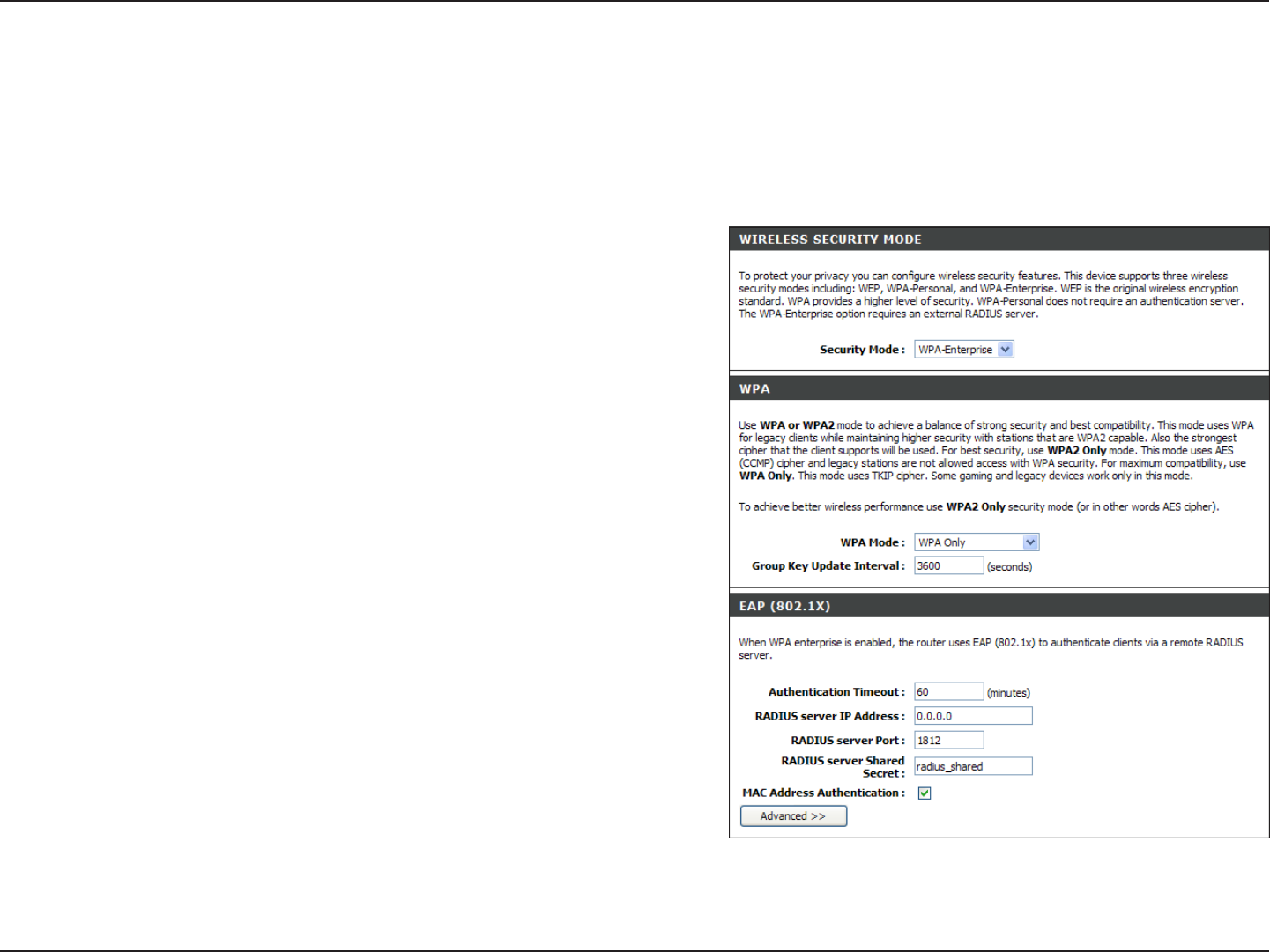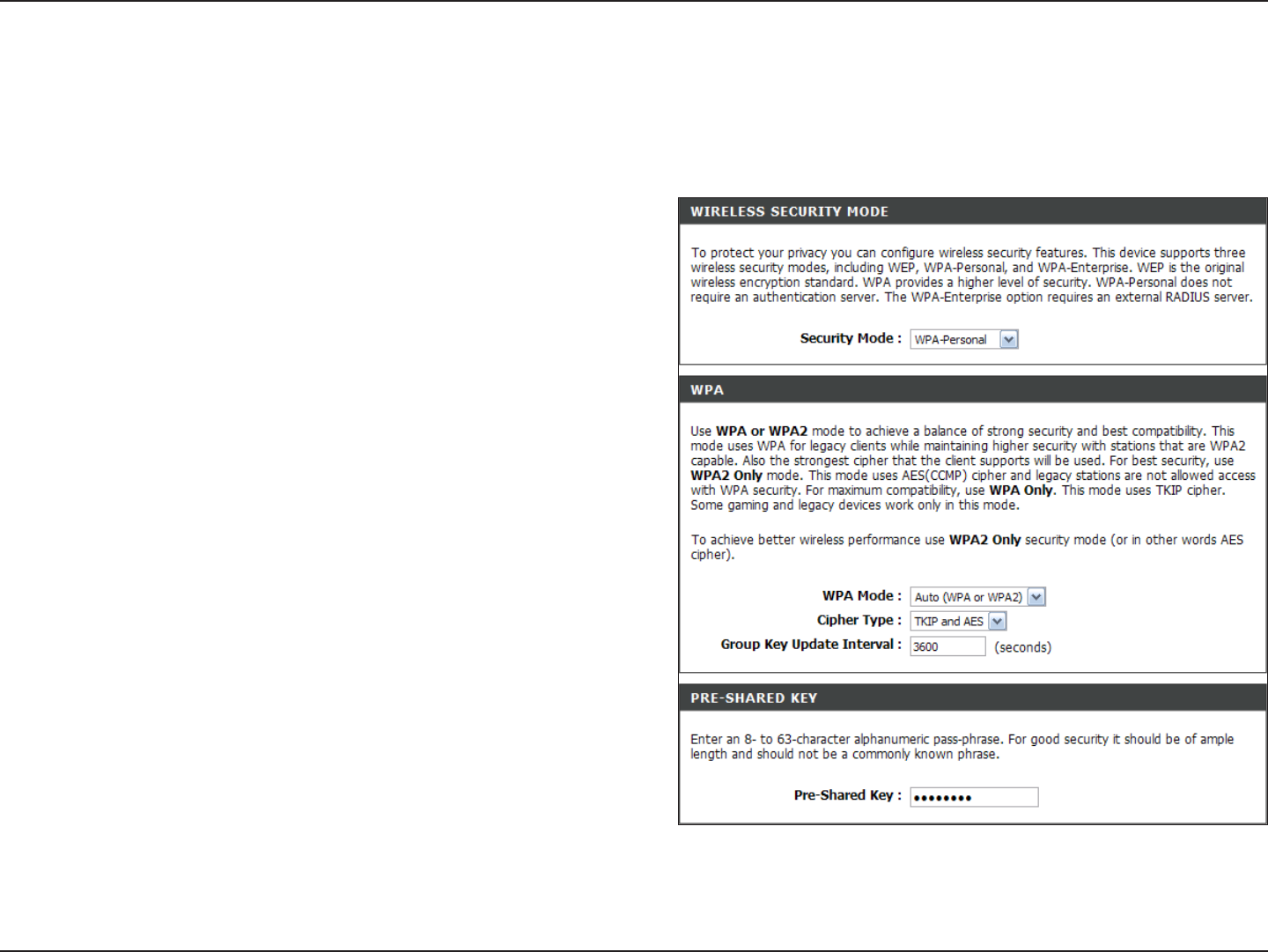 This section will show you the dierent levels of security you can use to protect your data from intruders. The DIR-615 oers the following types