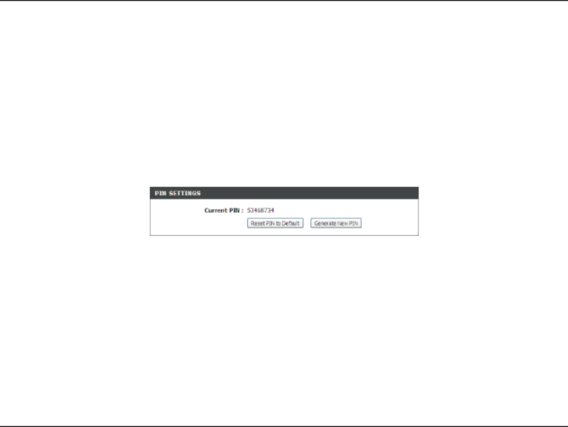 displayed on the Advanced > Wi-Fi Protected Setup section or choose to click the Generate New PIN button or Reset PIN to Default button.