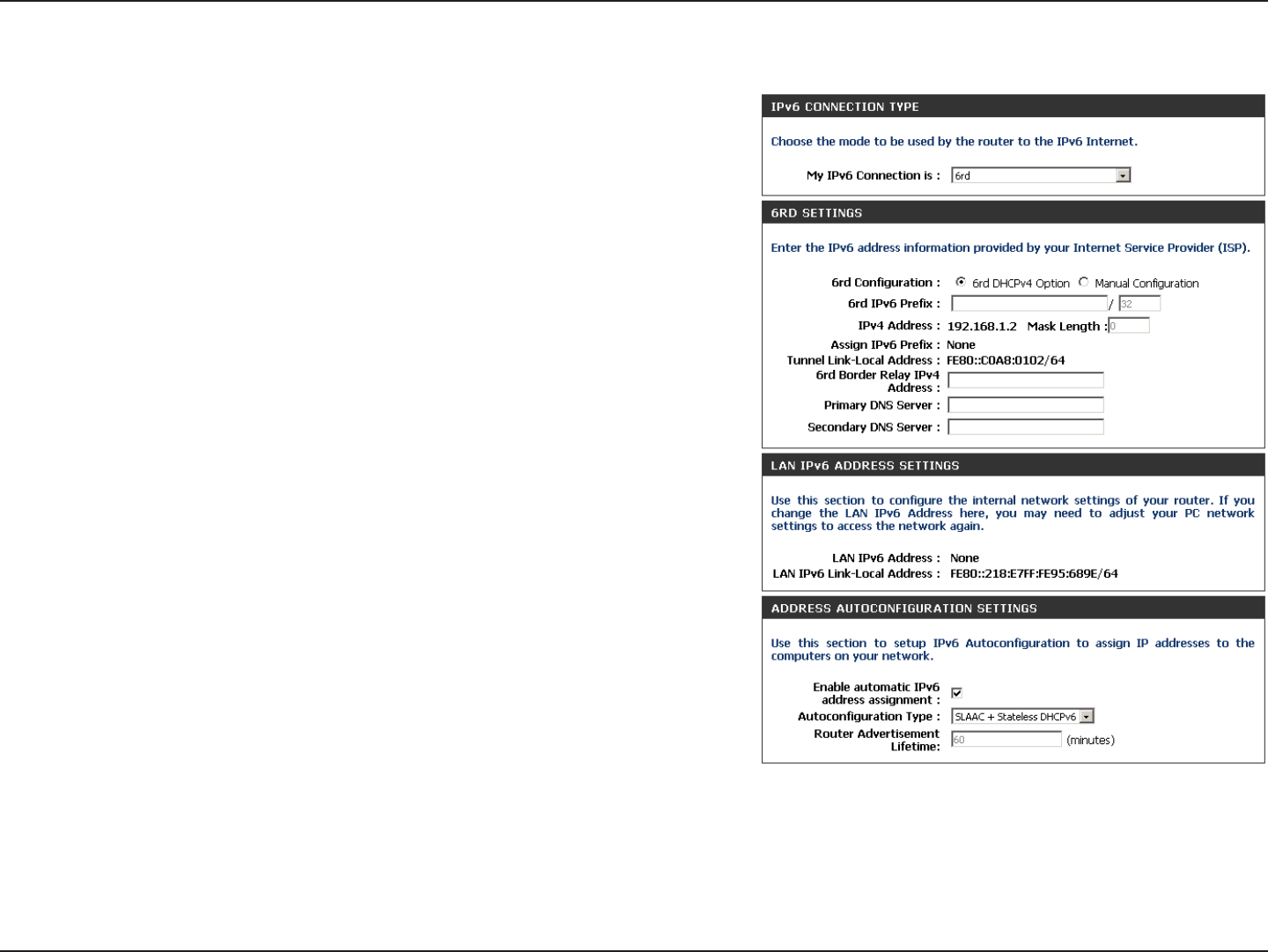 IPv6 Manual Setup.........................................................64