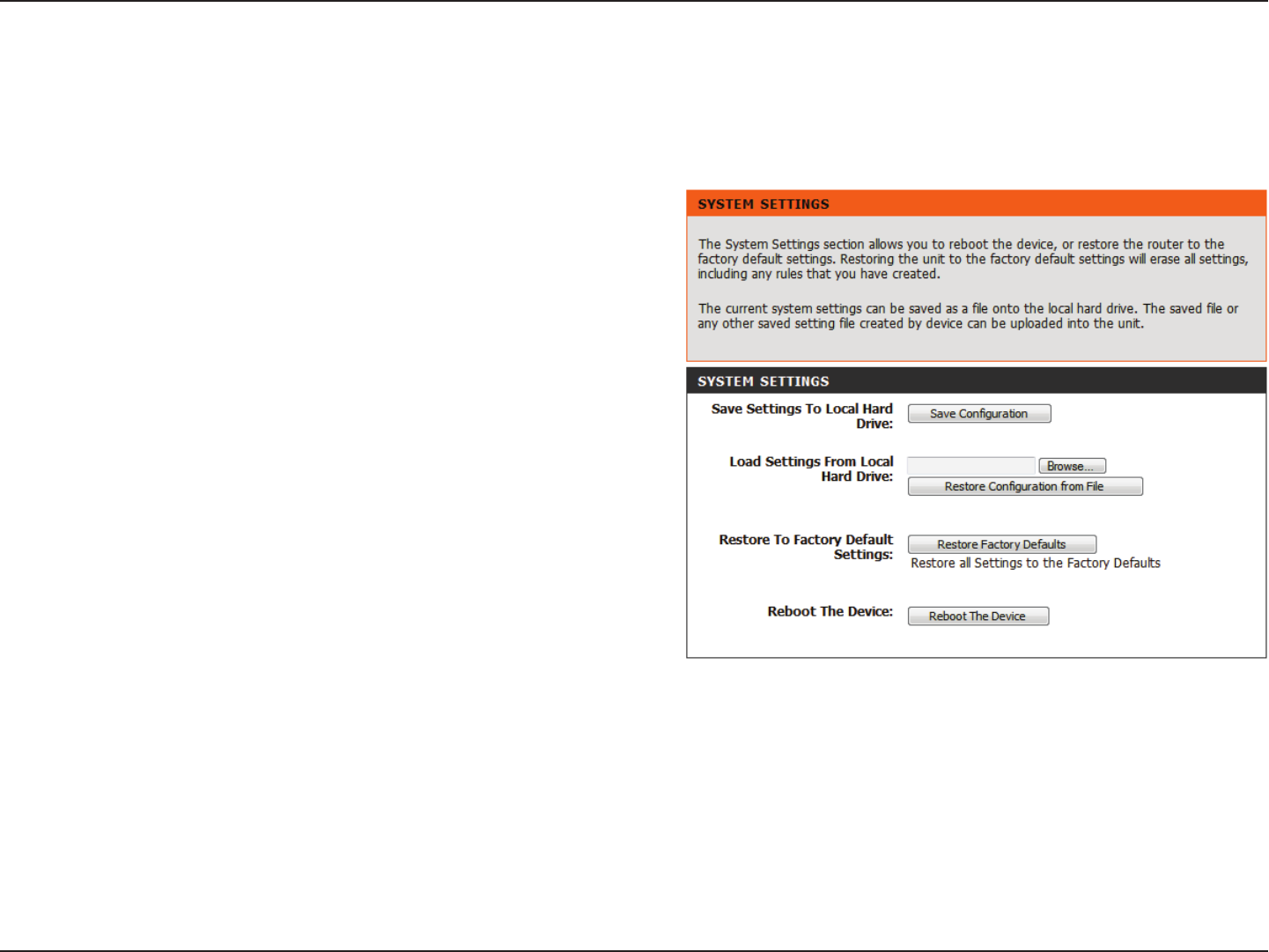 This section allows you to manage the router’s conguration settings, reboot the router, and restore the router to the factory