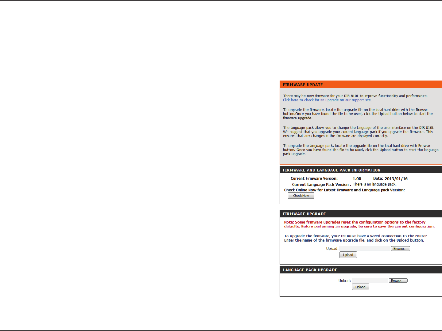 for rmware updates at http://support.dlink.com. You can download rmware upgrades to your hard drive from this site.