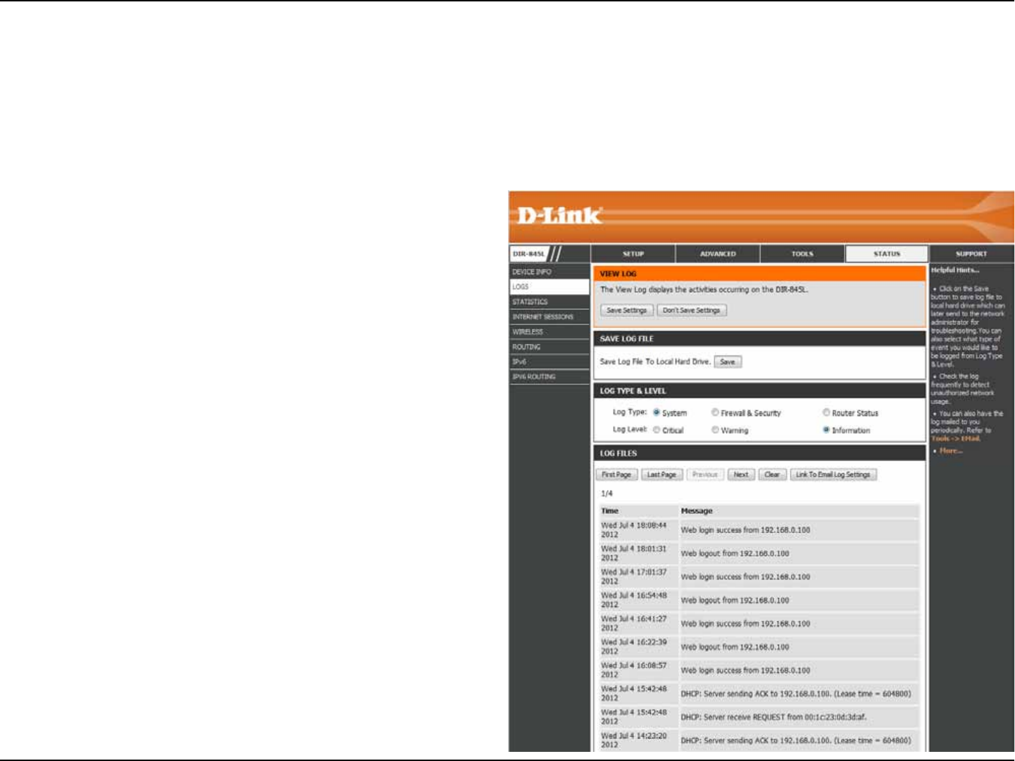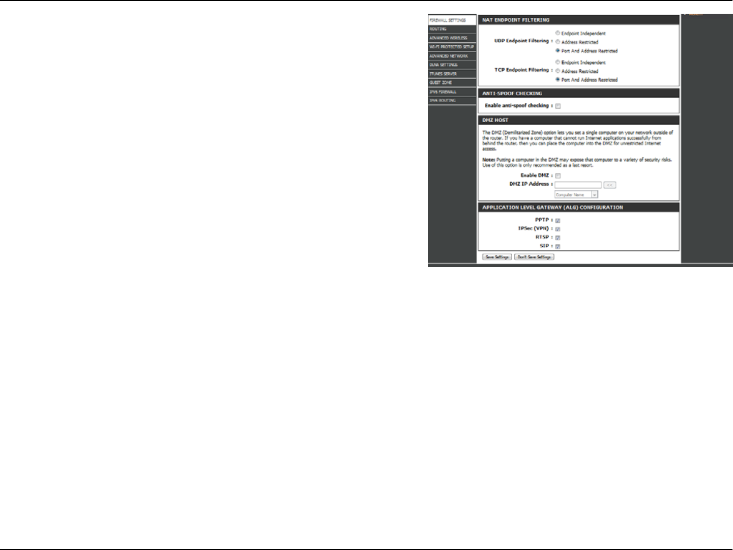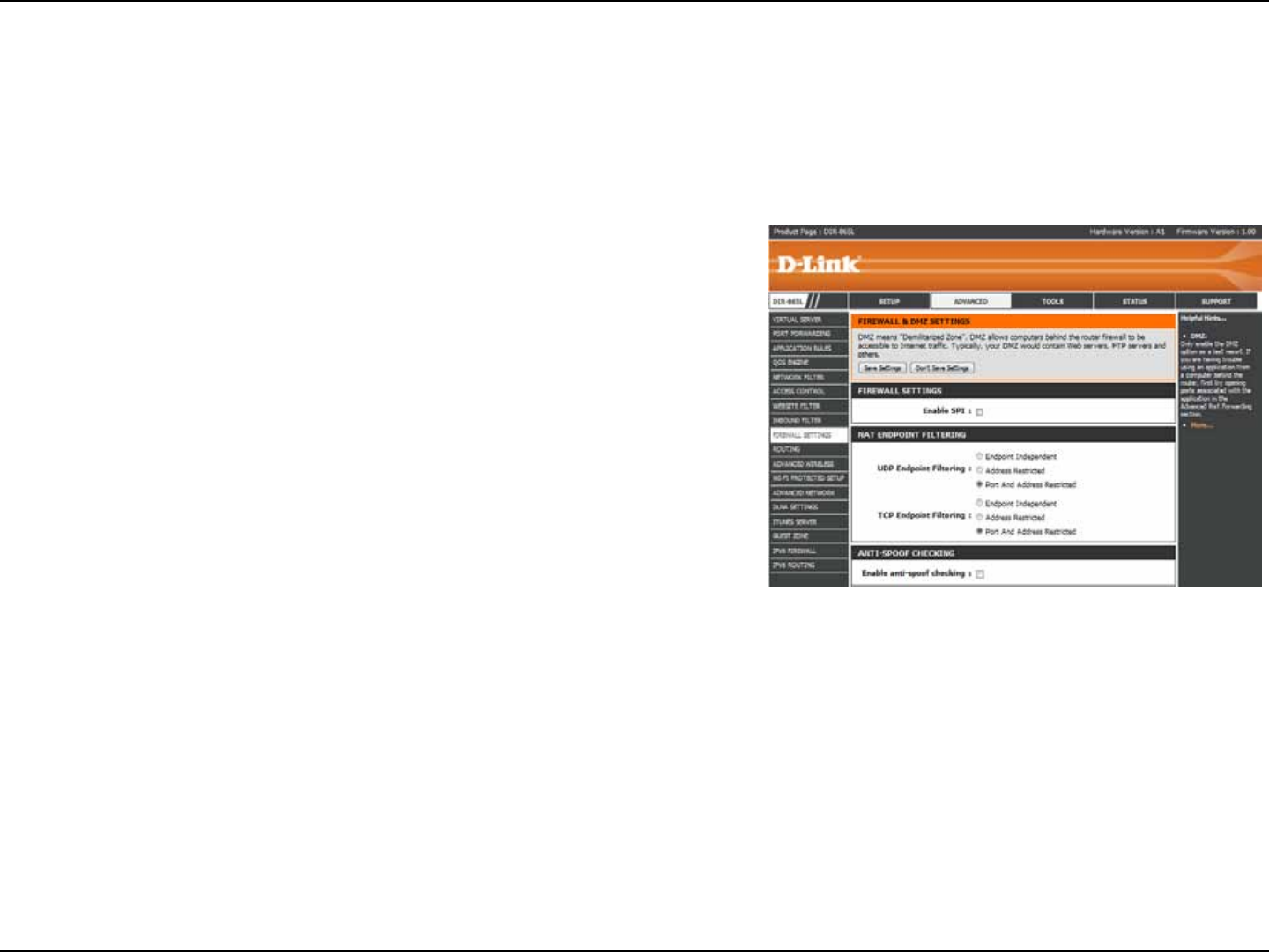 A rewall protects your network from the outside world. The DIR-845L oers a rewall type functionality. The SPI feature helps