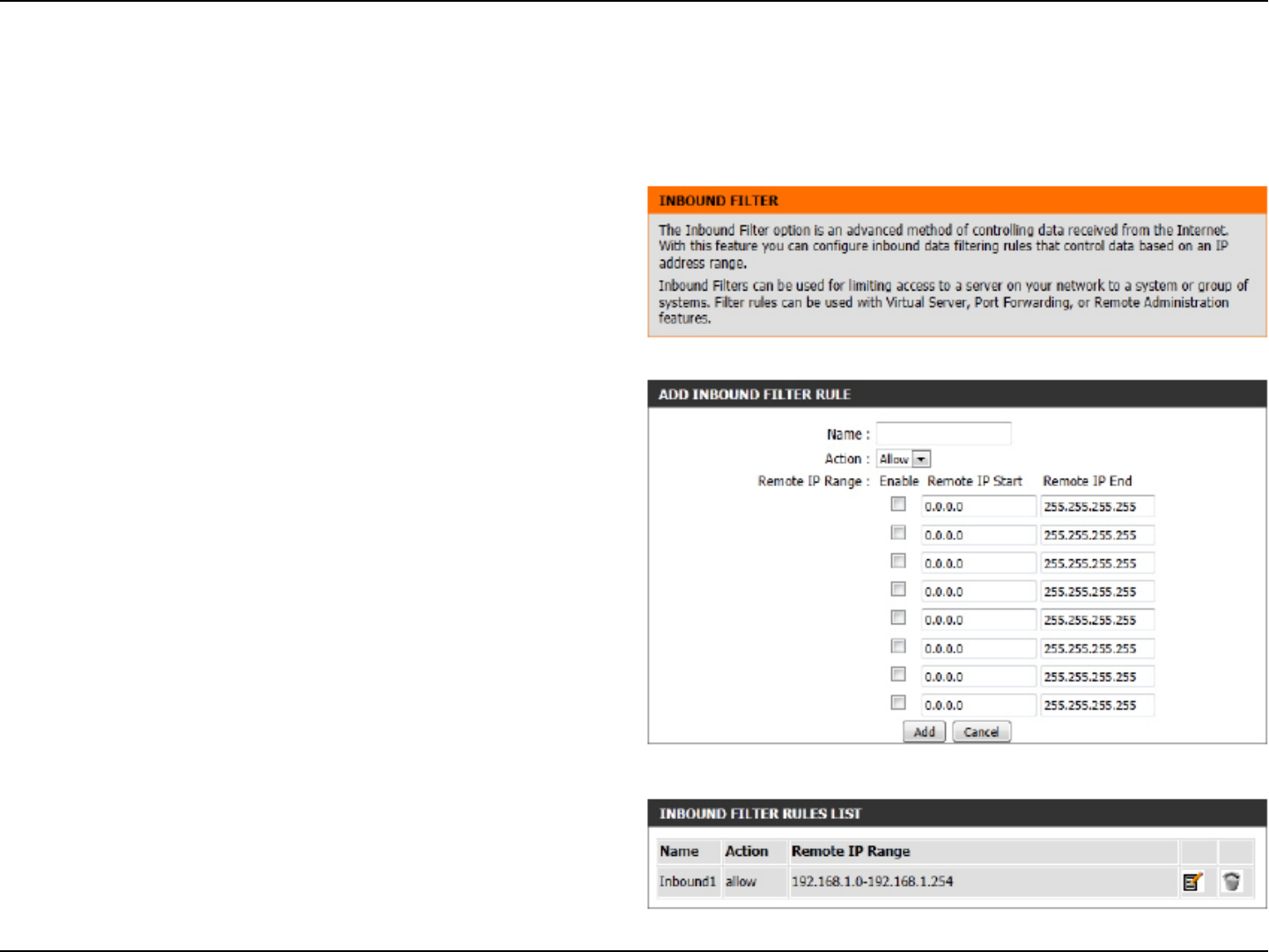 The Inbound Filter option is an advanced method of controlling data received from the Internet. With this feature you can