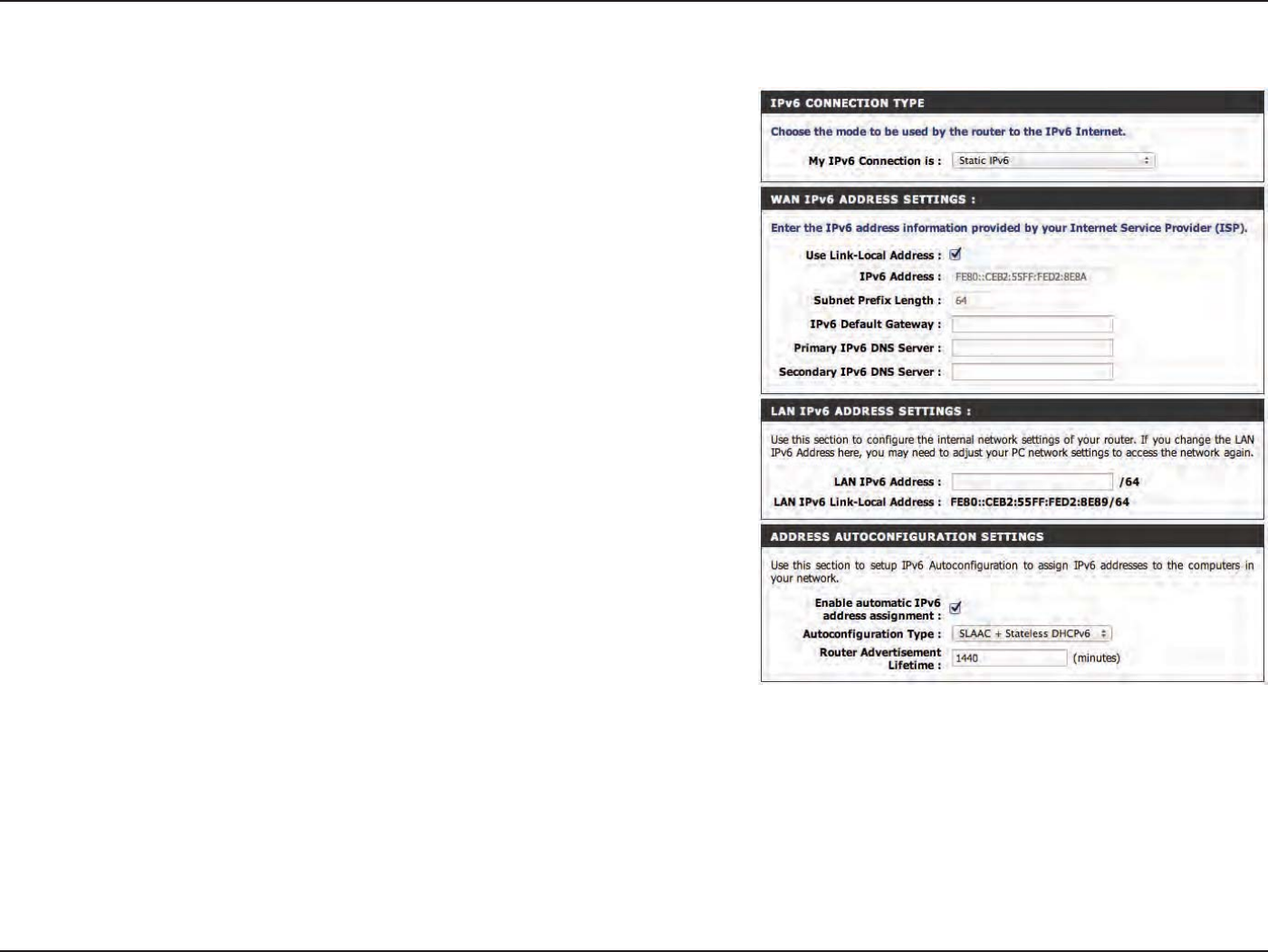 Manual IPv6 Local Connectivity Setup ..................56