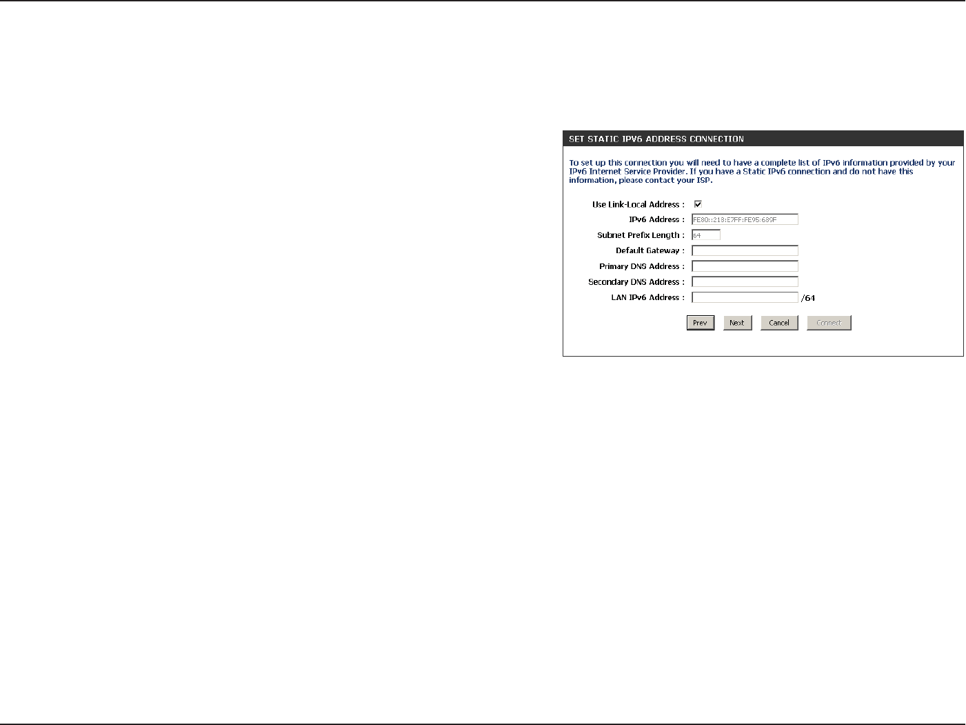 Manual IPv6 Local Connectivity Setup ..................56