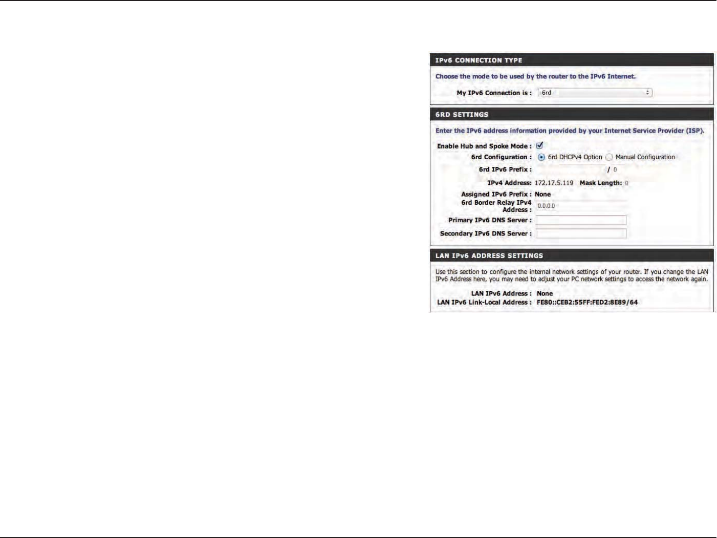 IPv6 Manual Setup.........................................................57
