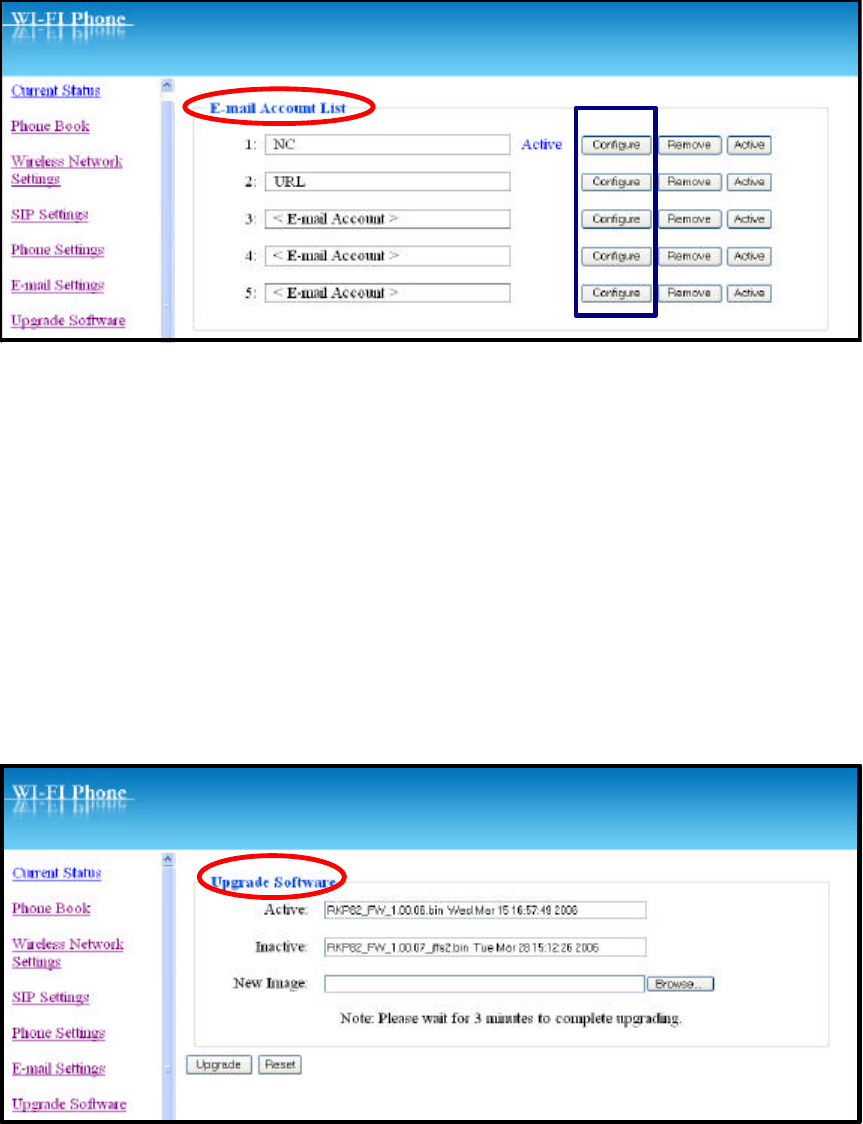 1. To adjust your e-mail account, click Configure to enter the sub-menu.