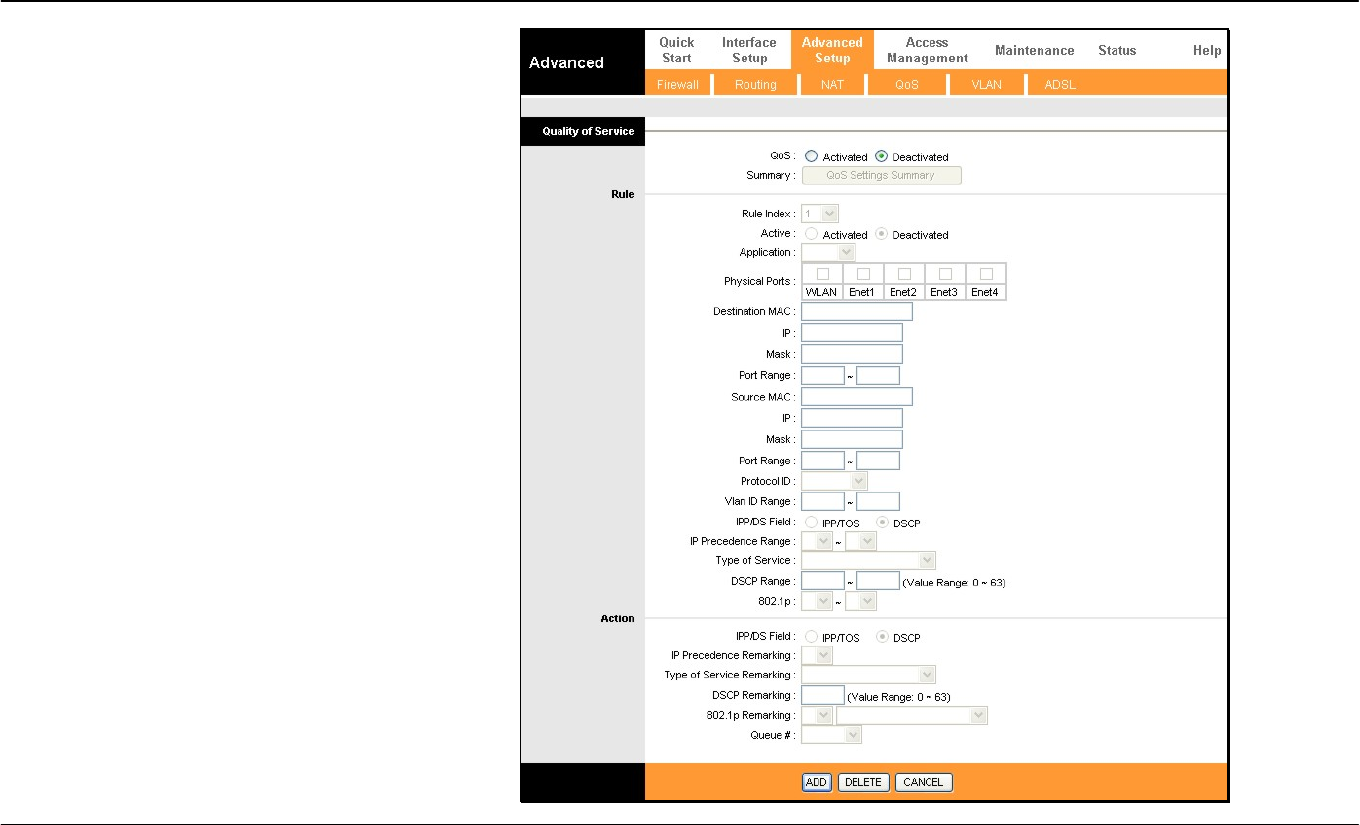 • ADSL interface: RJ-11 connector for connection to 24/26 AWG