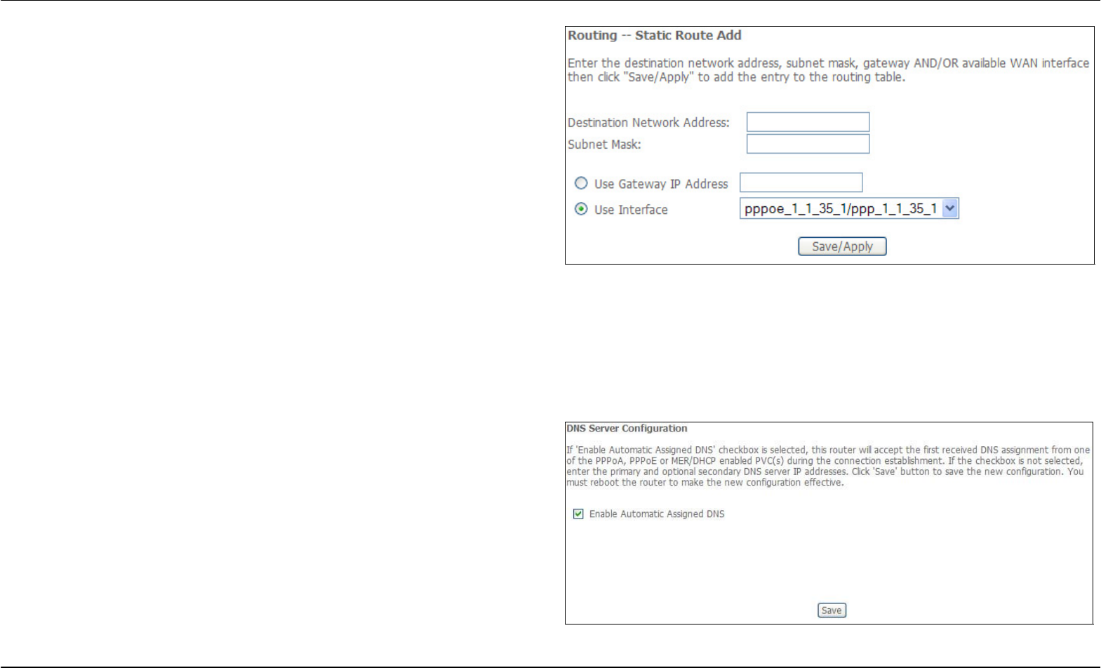 To access the DNS windows, click the DNS button in the Advanced Setup directory. The NAT button appears when configuring WAN interface in