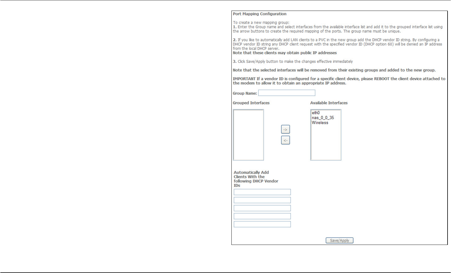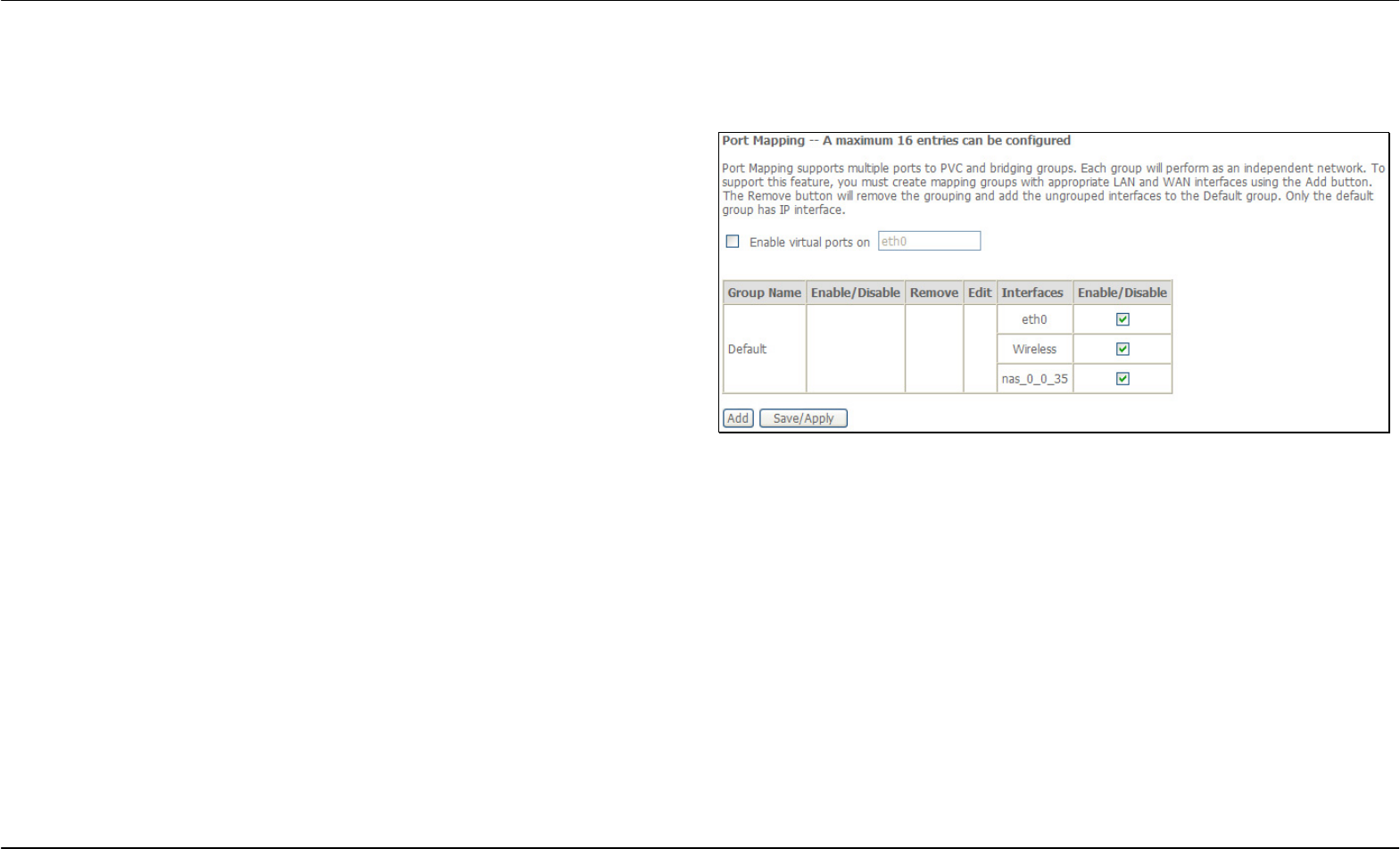 To access the Port Mapping window, click the Port Mapping button in the Advanced Setup directory.