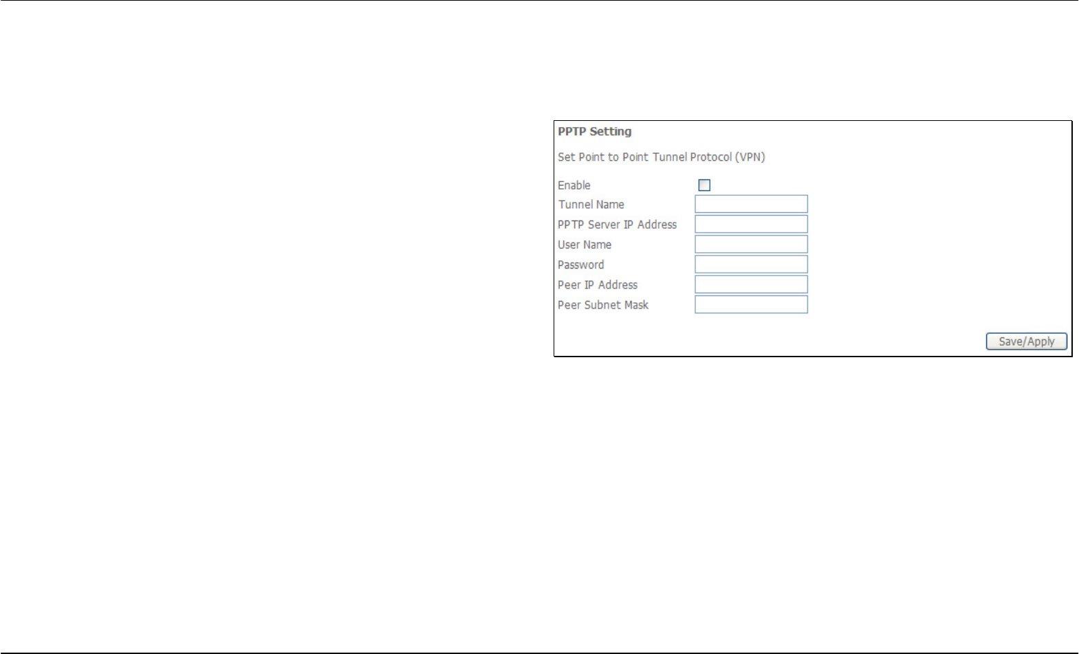 To access the PPTP Setting window, click the PPTP button in the Advanced Setup directory.