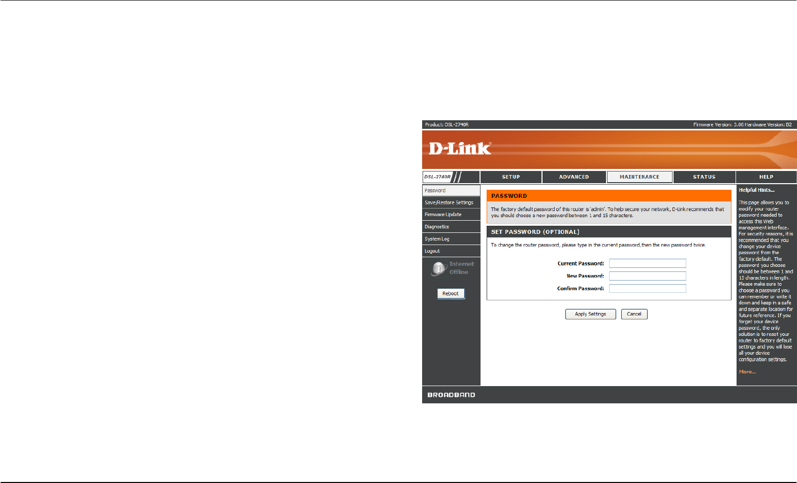 the Apply button. Finally, click the Reboot button on the left panel to let