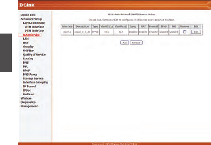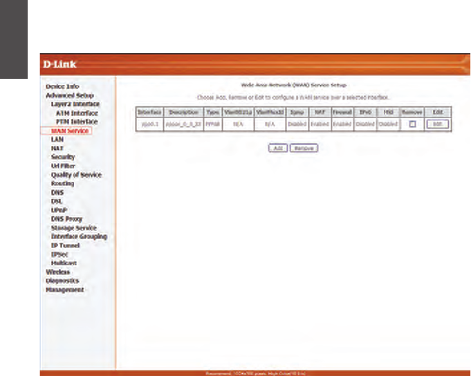 Choose Advanced Setup >WAN Service, and the following page appears, so you can