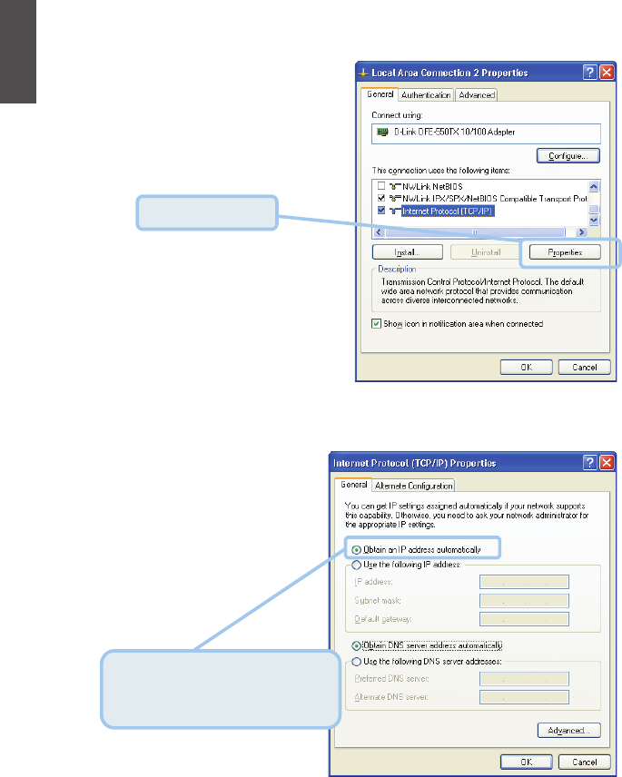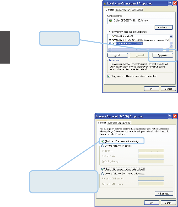 must be configured to “Obtain an IP address automatically,” that is, you must change the IP