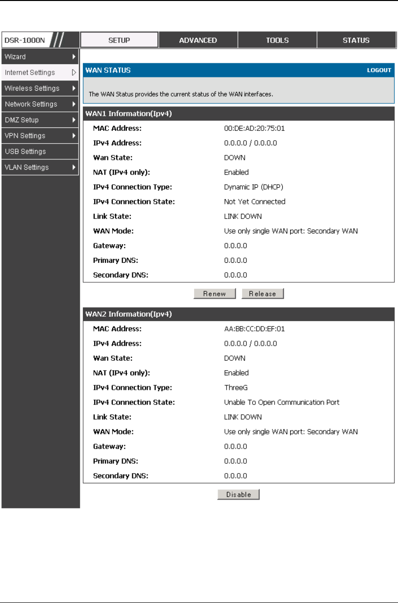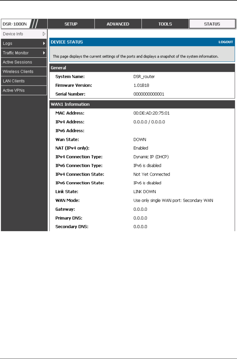 4. Ensure that an IP address is shown for the WAN port. If 0.0.0.0 is shown, your firewall