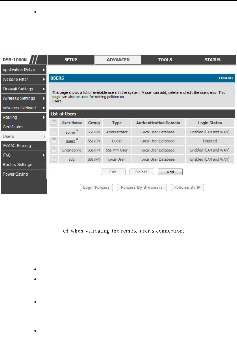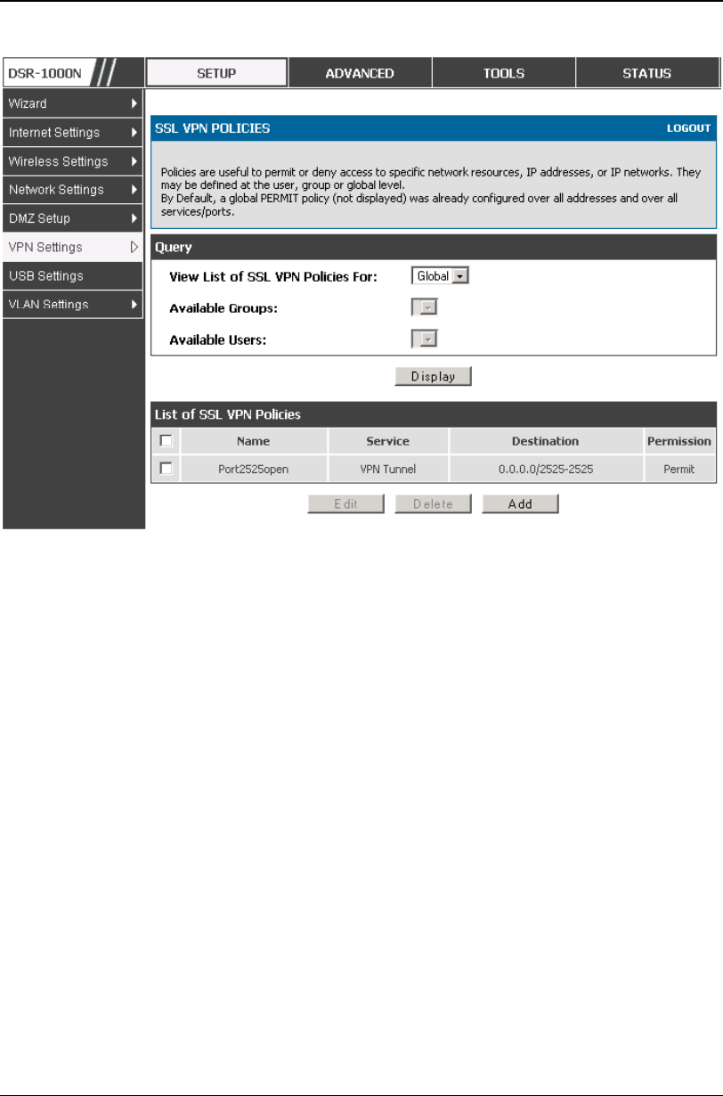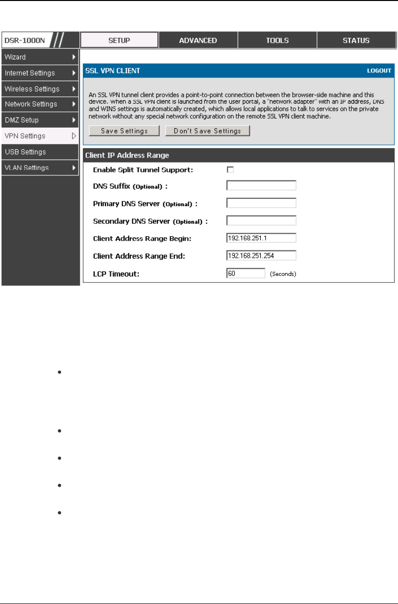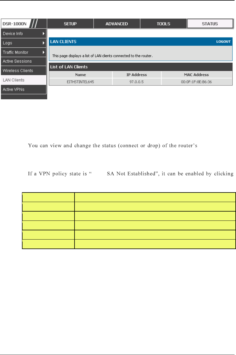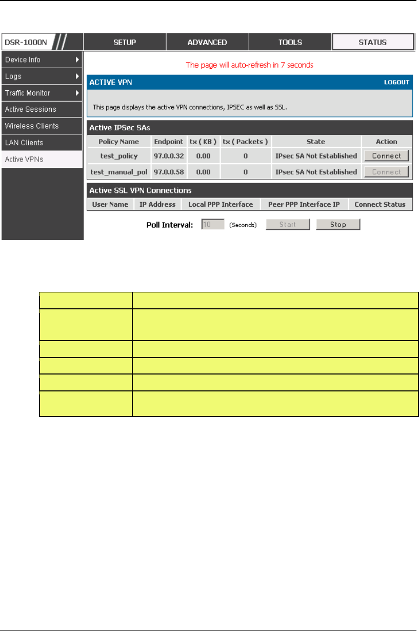 Connect Status Status of the SSL connection between this router and the remote VPN client: Not