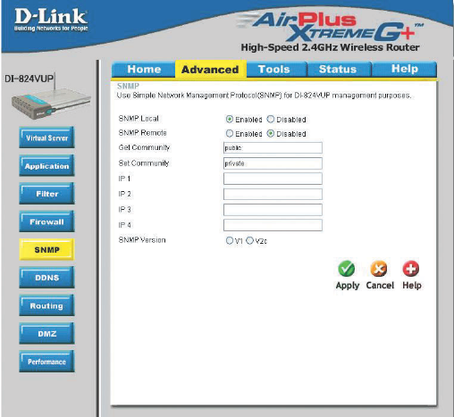 network. SNMP can be used to monitor traffic and statistics of the DI-824VUP. The DI-