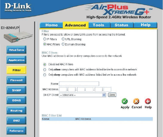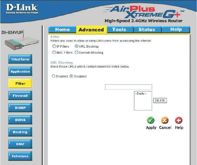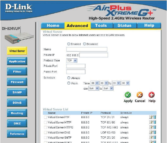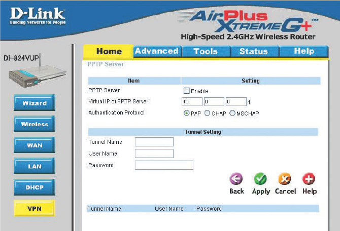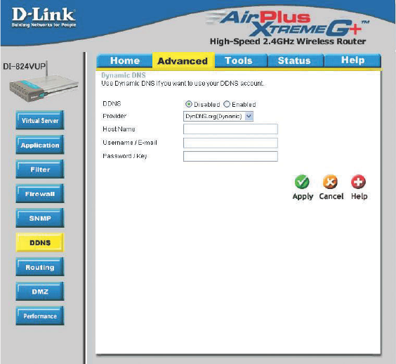 Users who have a Dynamic DNS account may use this feature on the DI-824VUP.