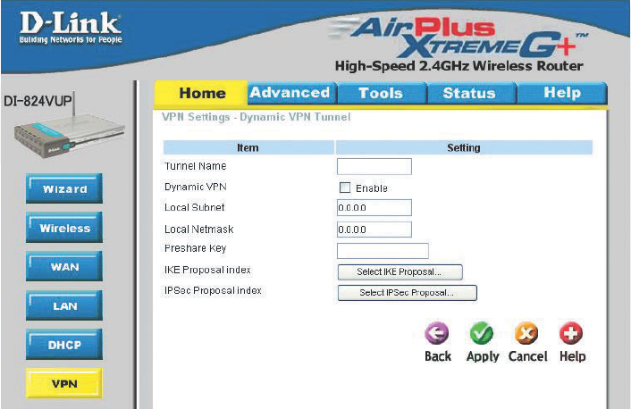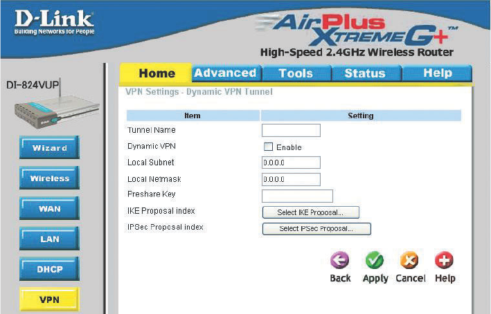 Home > VPN Settings > Dynamic VPN Tunnel Continued...