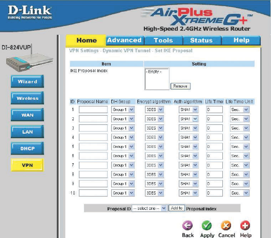 Home > VPN Settings > Dynamic VPN Tunnel > Set IKE Proposal