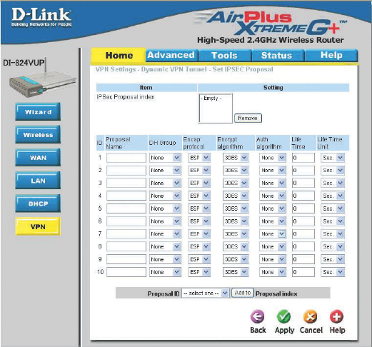 Home > VPN Settings > Dynamic VPN Tunnel > Set IPSEC Proposal