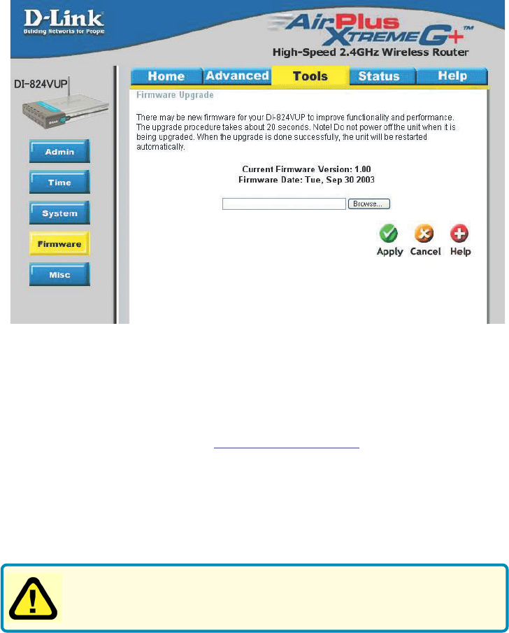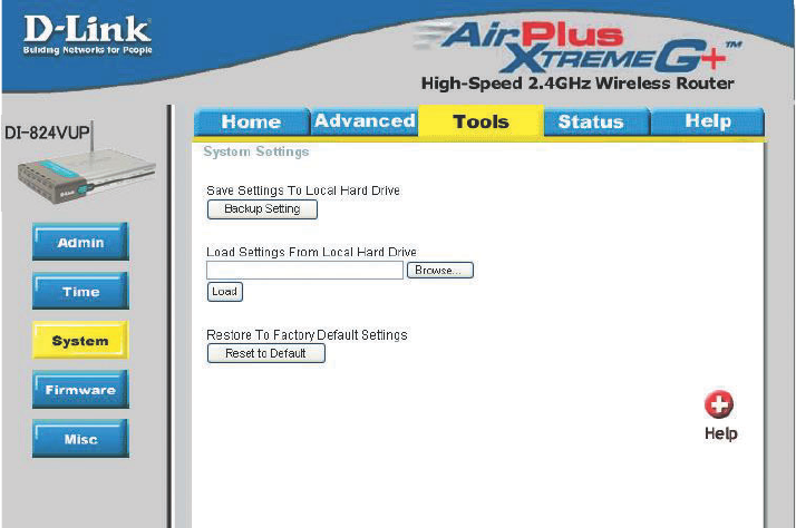 file or any other saved setting file created by the DI-824VUP can be uploaded into the